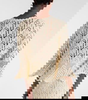 ROTATE Birger Christensen's 'Milandran' top is woven with circular crochet detailing and has pretty scalloped sleeves. Made from organic cotton, it has a cropped length and a silver-tone 'R' clasp at the front. Wear yours with a tank and denim shorts.