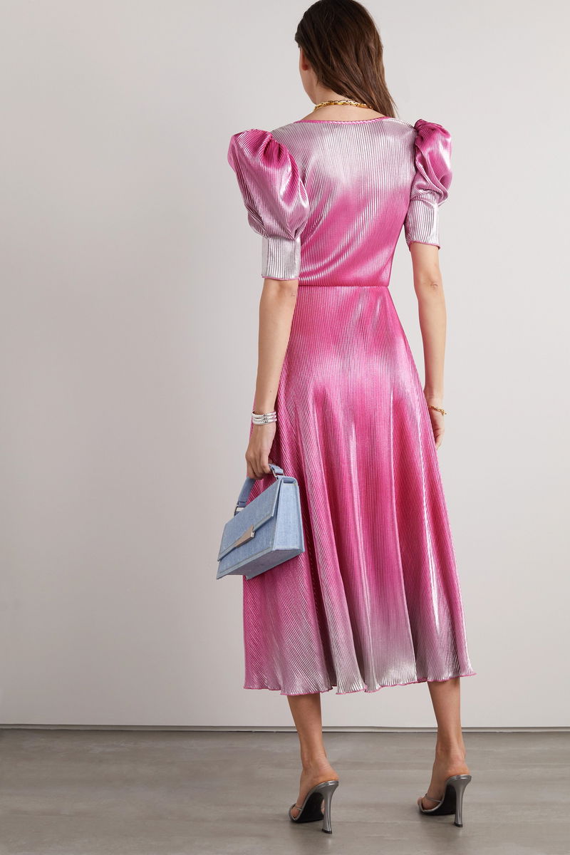 It's not OTT to say ROTATE Birger Christensen's 'Sierina' dress looks magical - it's made from plissé-satin that shimmers pink or silver when the pleats fan out and hit the light. The gathered silhouette recalls '80s prom styles.