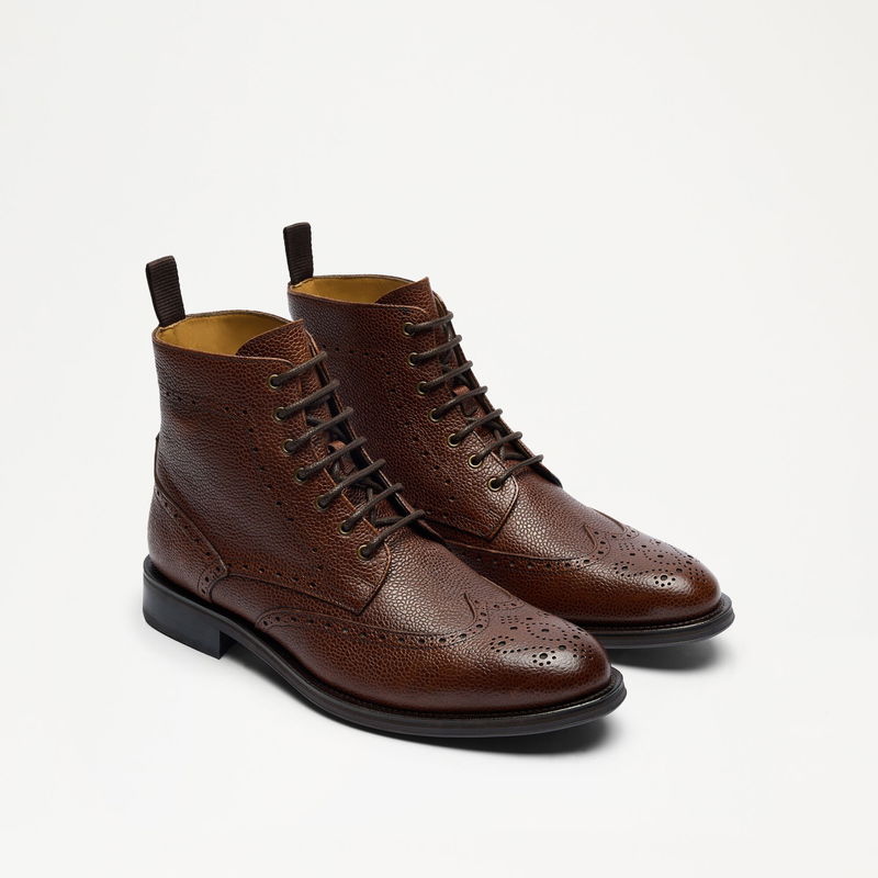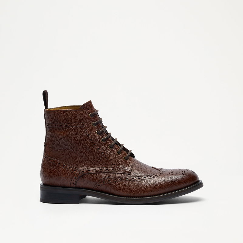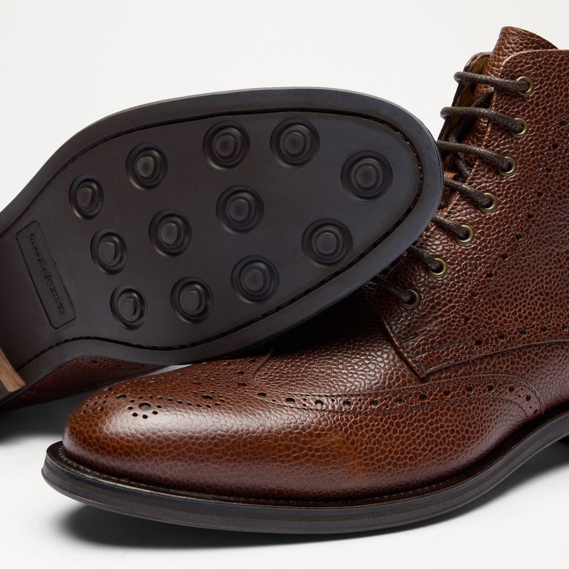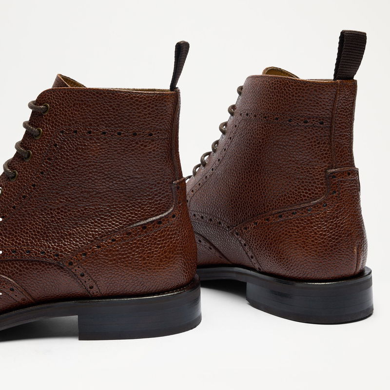 Barton Brogue Boot leans into the language of classic craftsmanship with wing-tip perforations, pebbled leather, and brogue detailing throughout, then reworks it through scale and texture. The higher profile adds structure and edge, grounded by a durable rubber sole. Rooted in tradition, made for now – familiar, but far from expected.