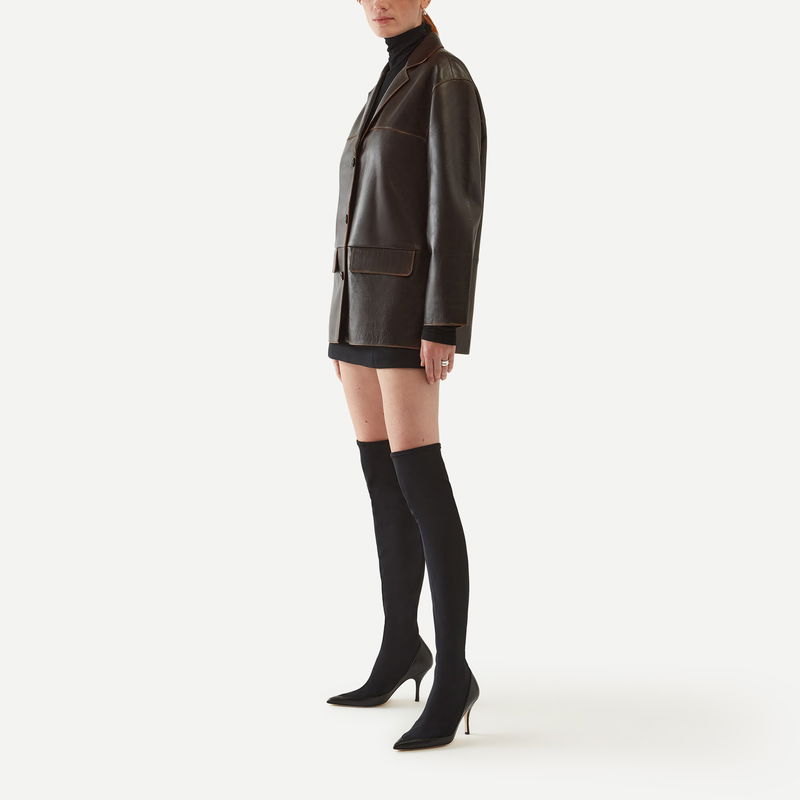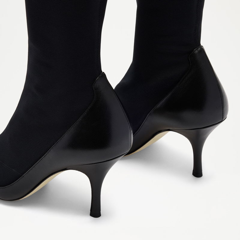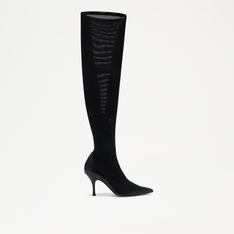 The ultimate event boot, Baycliff is attitude, sharpened. A pointed toe, a sculpted stiletto, mesh that skims the leg giving the illusion of wearing a court shoe and tights. This is a statement like no other.