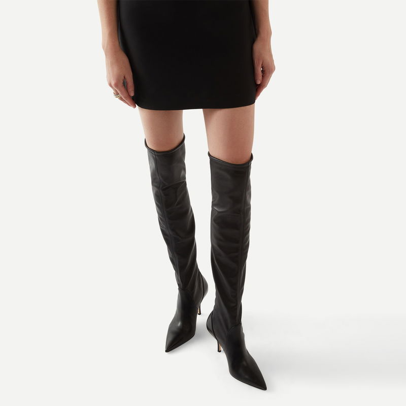 Baycliff Tall features all the signatures of its shorter counterpart. A pointed toe, a sculpted stiletto, and a silhouette that cuts straight through the noise. Clean, lean, and unapologetically bold, now in a leg-skimming tall boot.