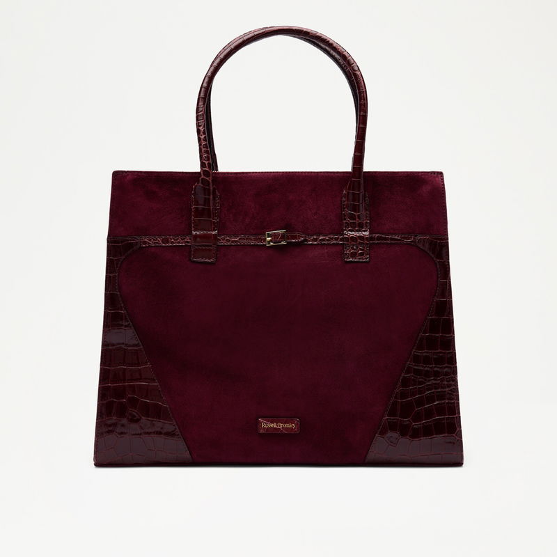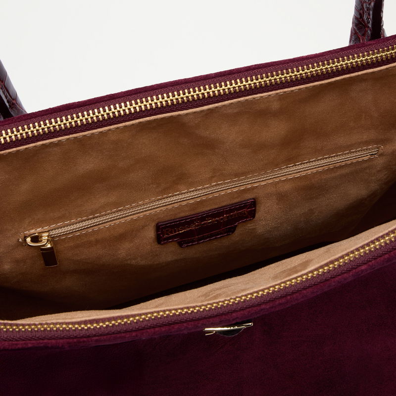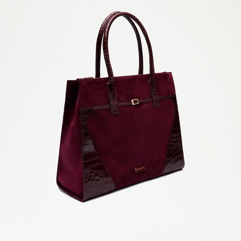 The Cholrton Tote brings premium leather finishes and hardware to the classic structured tote. Soft suede is framed with crocodile print leather and finished with a belted gold buckle trim. Inside, three compartments offer considered organisation, refined and built for purpose.