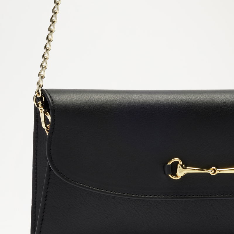 Our Churton clutch is defined by our signature heritage snaffle – a detail rooted in the archive and reimagined across our shoes, and now, accessories. The structured silhouette is finished with a detachable chain strap allowing for versatility in wear. Designed to pair seamlessly with snaffle styles across the collection.