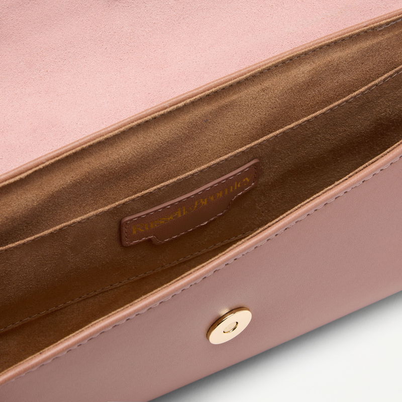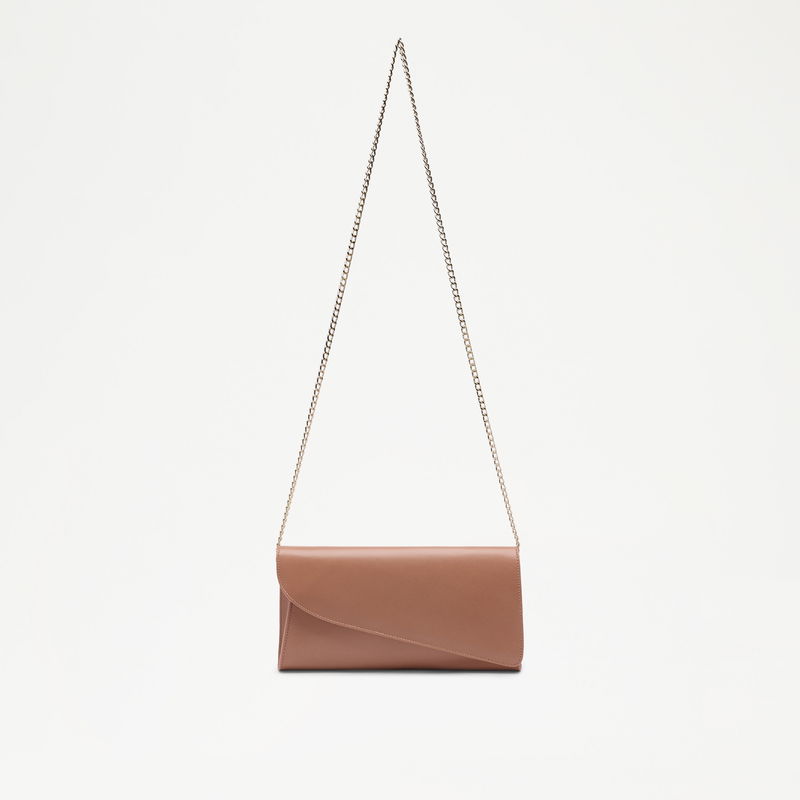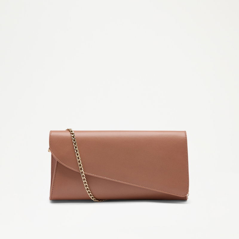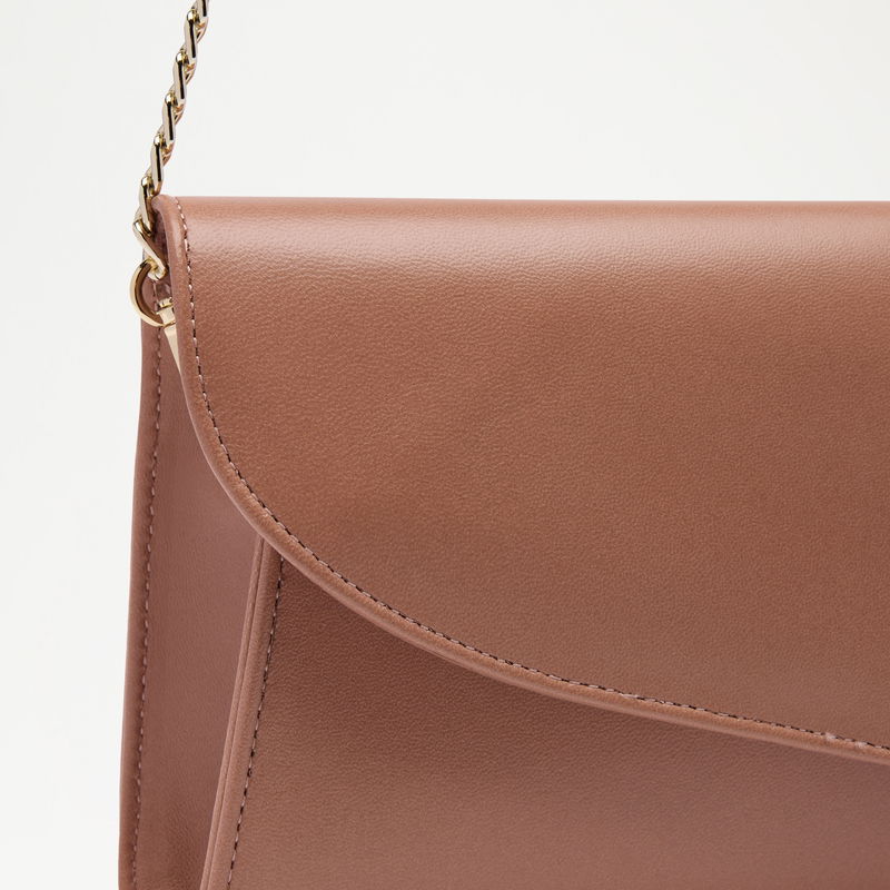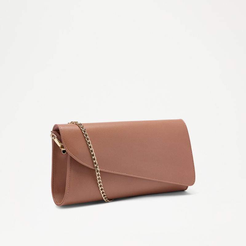 Colby reimagines the classic clutch with a sculpted edge. Finished with a detachable chain, it transitions seamlessly from handheld to shoulder or crossbody. Crafted in blush leather, Colby is designed to pair back to key party heels across the collection.