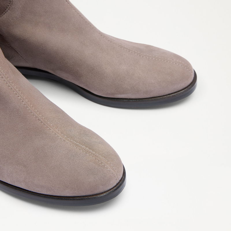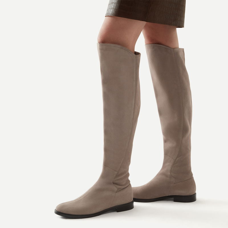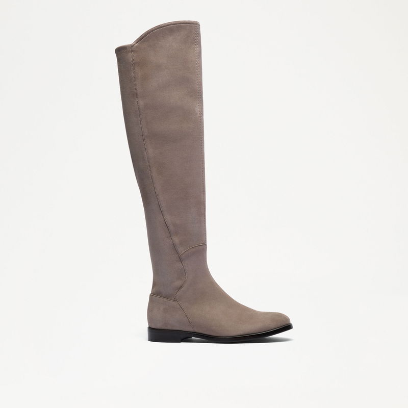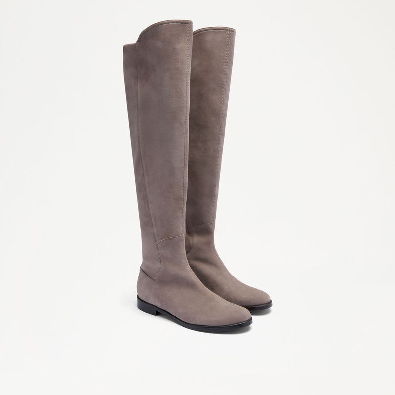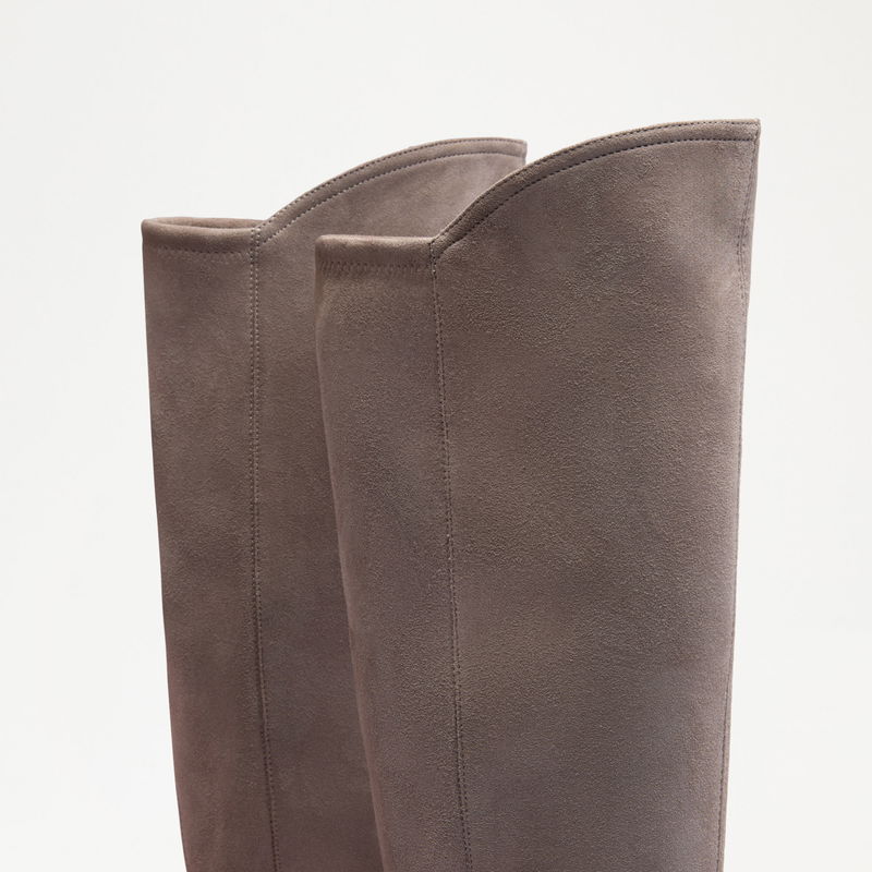 An elevated take on a flat riding boot, this is our over the knee boot, Firbank Over Knee. Crafted in Spain from soft suede, this classic design features stitch-detail panelling, offering a sleek and elegant silhouette.
