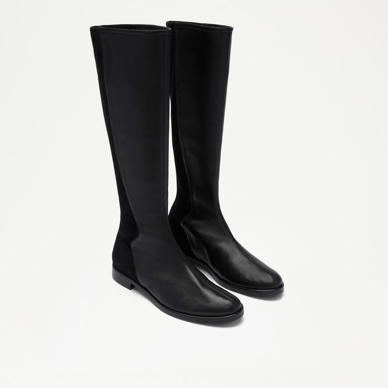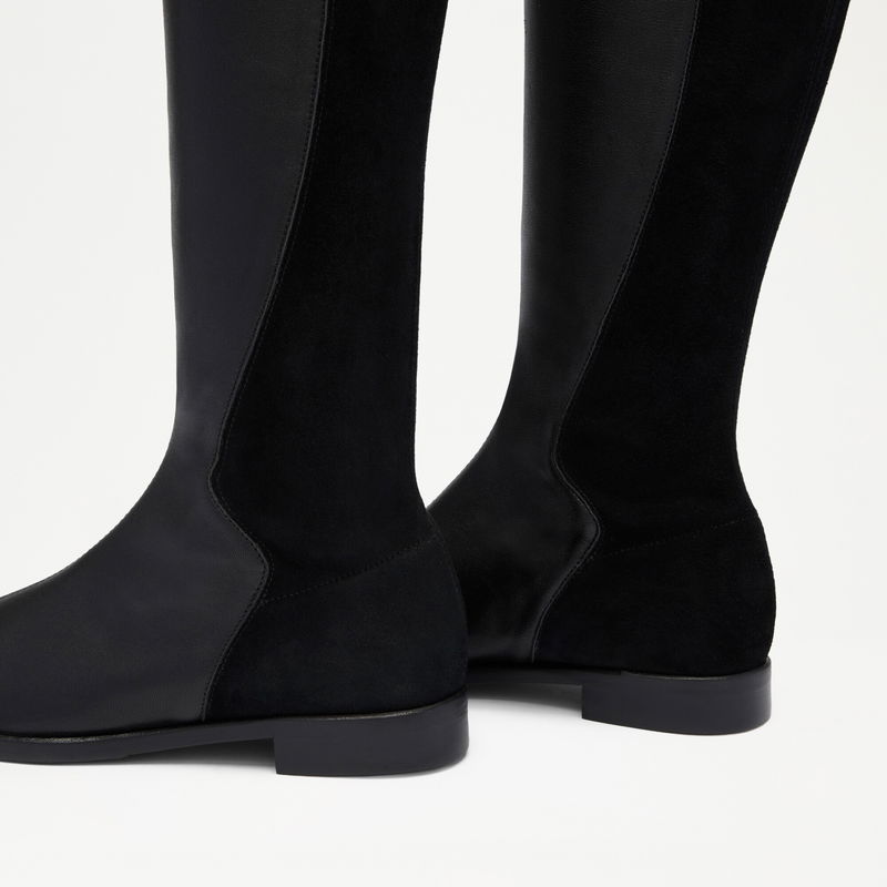 An elevated take on a flat riding boot, this is our knee high boot, Firbank Tall. Crafted in Spain from a leather and soft suede split, this classic design features stitch-detail panelling, offering a sleek and elegant silhouette.