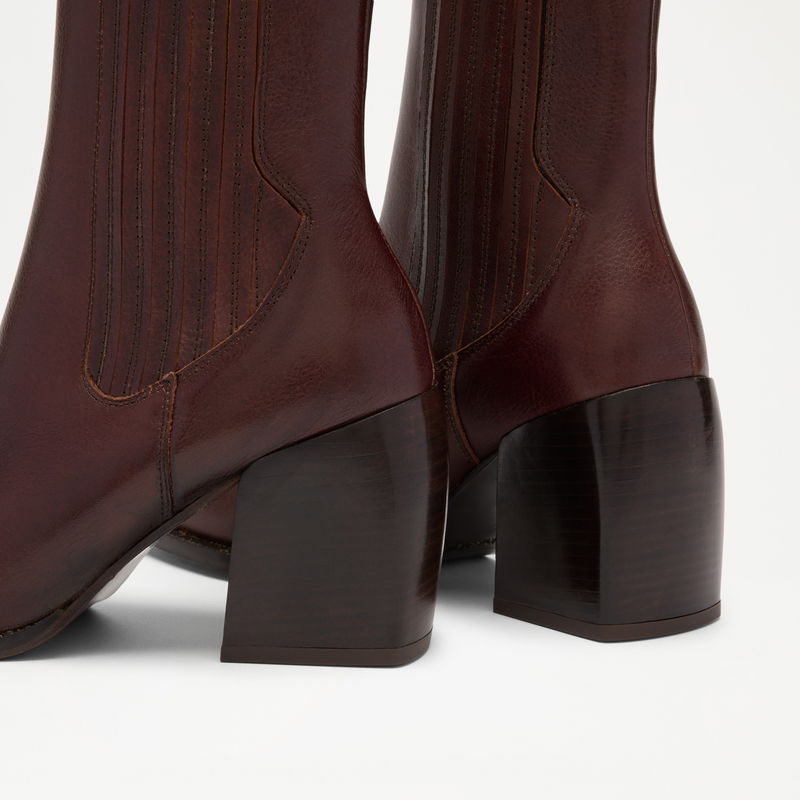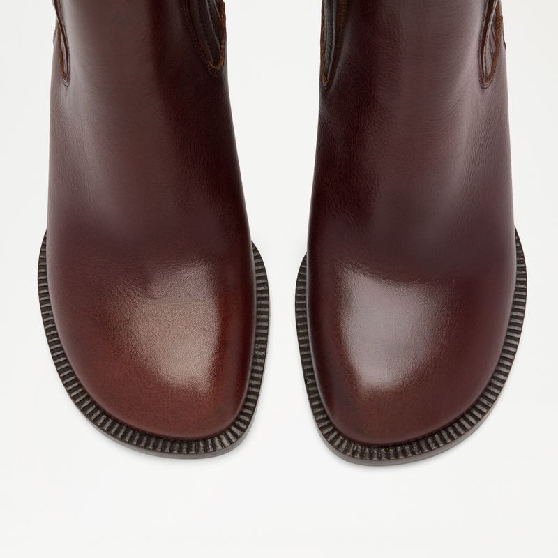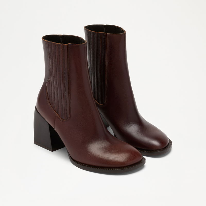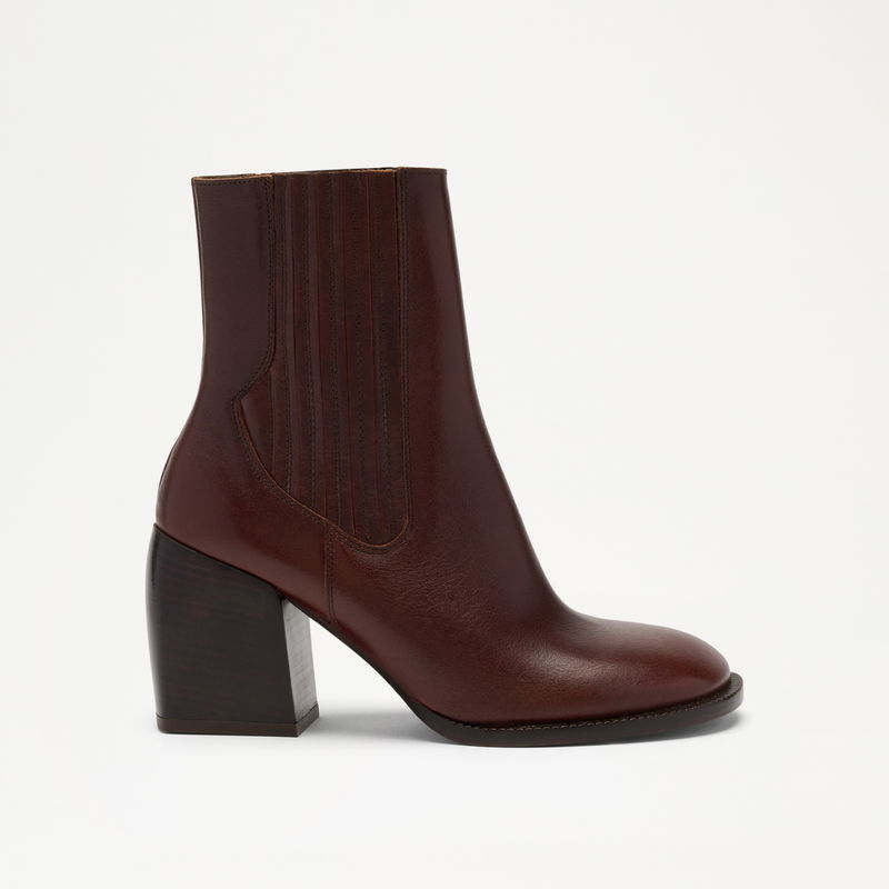 The Gatley boot builds on the Gatley's sculptural language in a pull-on high ankle silhouette. The rounded toe and tonal block heel mirror the mule, while a leather-covered elasticated panel and high topline give a clean, close fit through the ankle. Minimal in detailing, strong in form – designed to move effortlessly between seasons.
