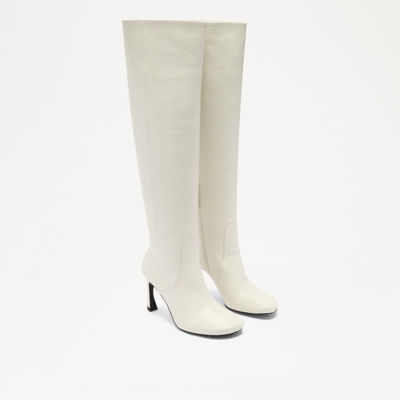 Halton Over the Knee is designed to make a statement. Set on a curved heel with a soft scoop toe, the tall silhouette features a high-cut front and structured stitching throughout. At the back, a deep split-V eases movement and creates a bold focal point – echoing the pointed tassel detail on our Chester loafer. Crafted for impact, with considered details throughout.