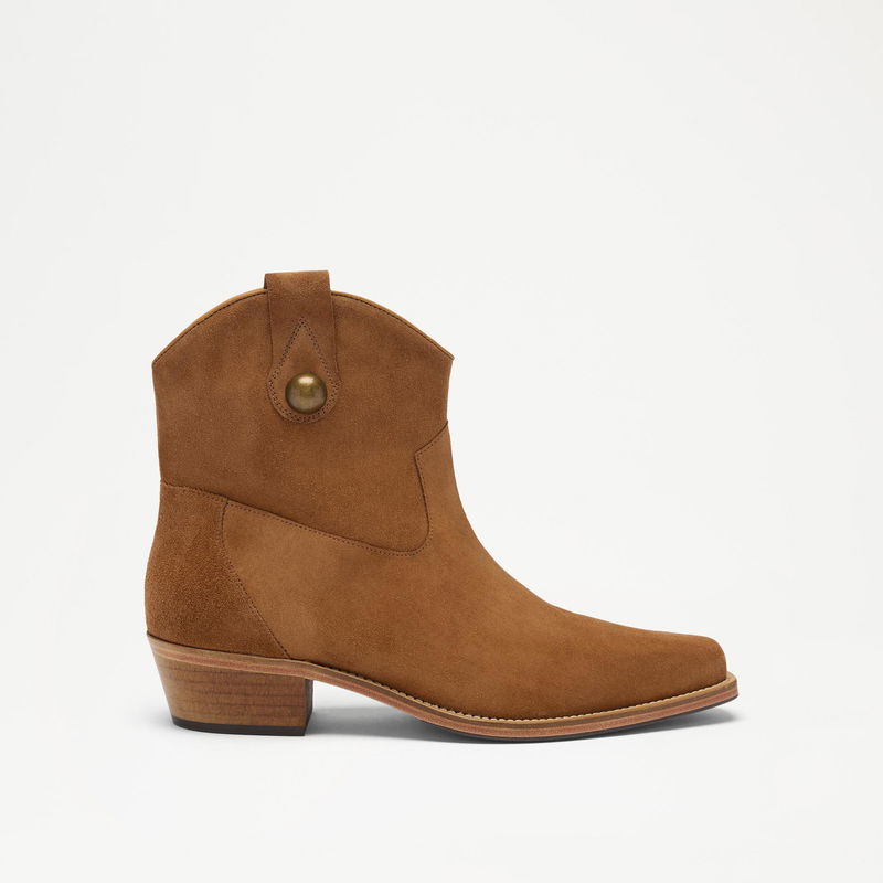 Saddle up with Kendall, our newest Western-inspired ankle boot. Exceptionally crafted from soft suede and featuring a bold Cuban heel and gold stud detailing, it's the perfect way to master the Western aesthetic.