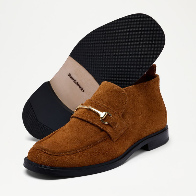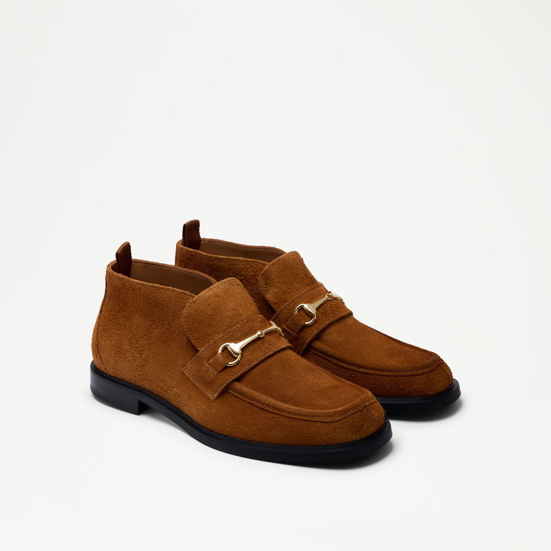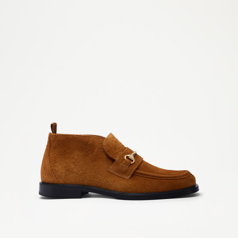 The Leyburn High Loafer builds on our existing Leyburn design lines. The silhouette is defined by a moc apron stitch and finished with our heritage snaffle trim. In tan hairy suede, the upper is treated for texture and depth, giving it a signature soft, tactile finish with a polished edge.