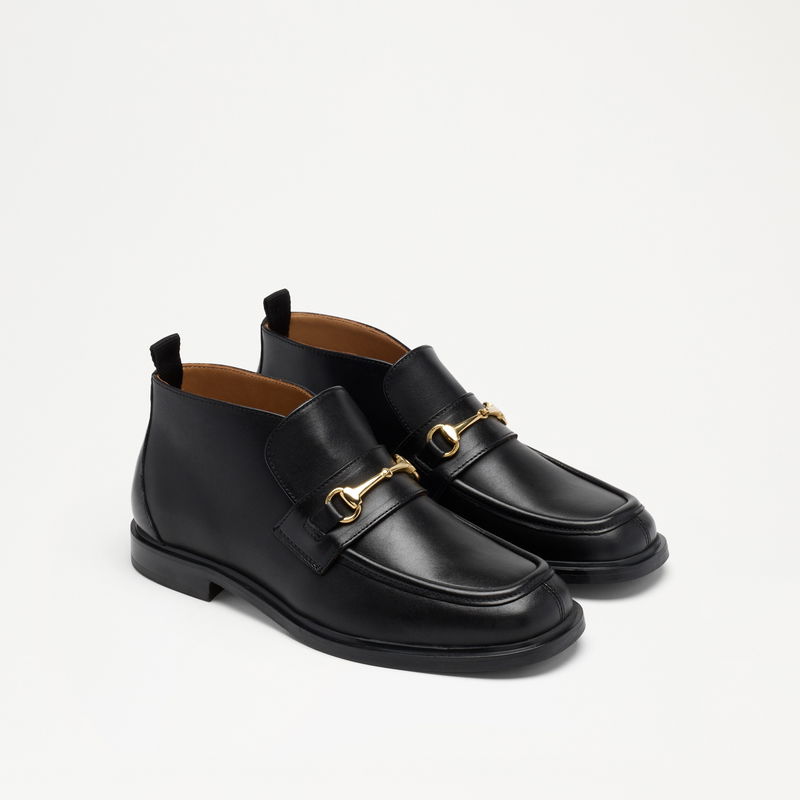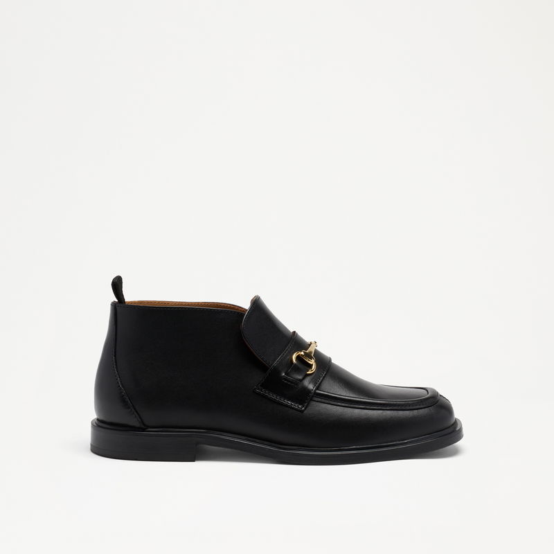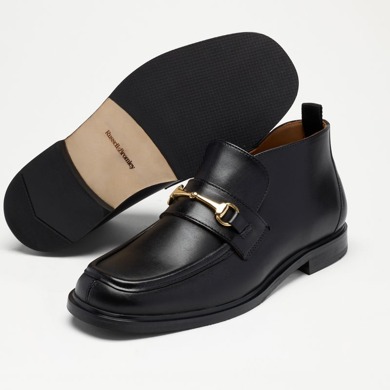 The Leyburn High Loafer builds on our existing Leyburn design lines. The silhouette is defined by a moc apron stitch and finished with our heritage snaffle trim. In supple black calf leather, Leyburn High Loafer is your updated everyday staple.