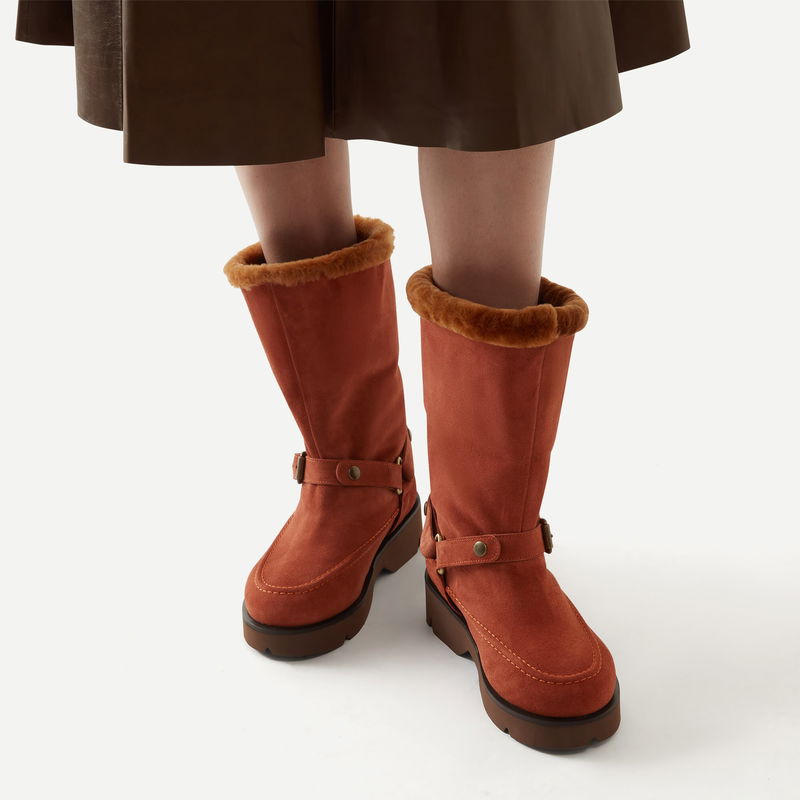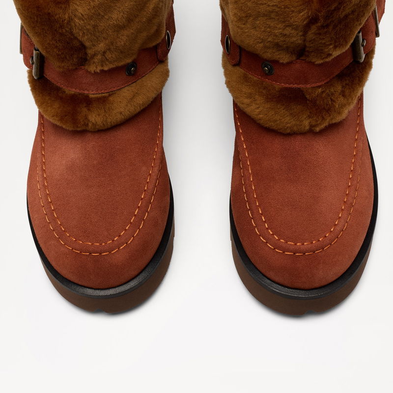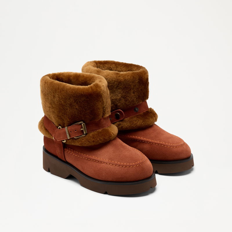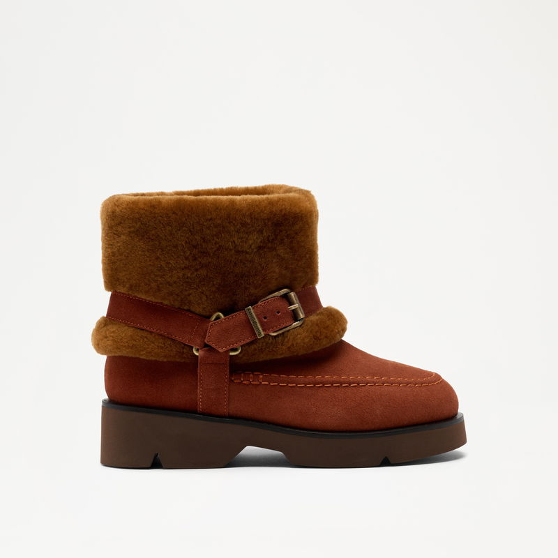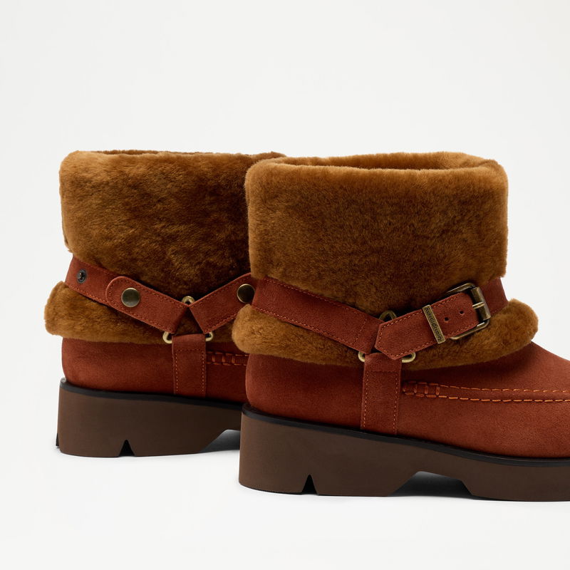 Add a touch of luxury to your cold weather wardrobe with Midlewich, the double shearling ankle boot. Designed for warmth and style, this boot features a cosy shearling collar and a modern ankle harness strap.