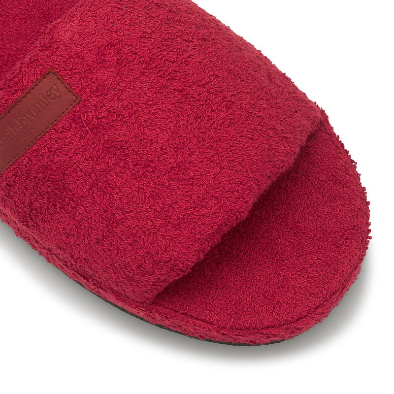 Ricco combines the classic slider silhouette with the attributes of a cosy slipper. Crafted from breathable bordeaux terry cloth fabric with a thick, cushioned sole, this versatile slip-on offers the utmost comfort with every step. Designed to be worn both in and outside of the home, this luxury slider offers all-year-round appeal.