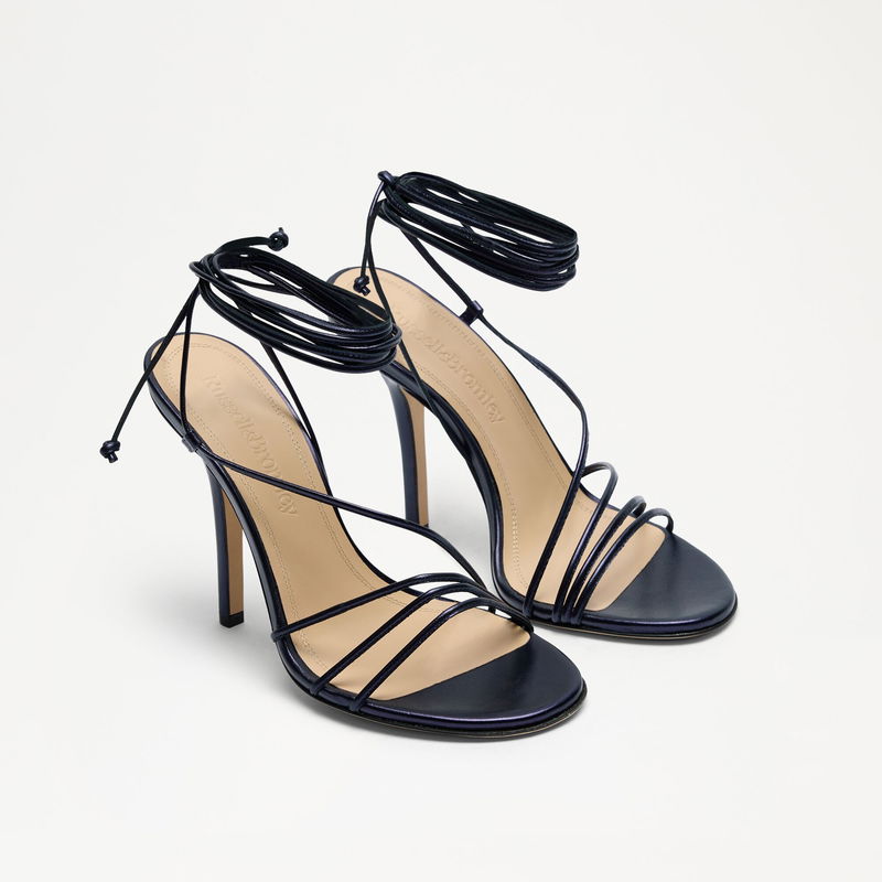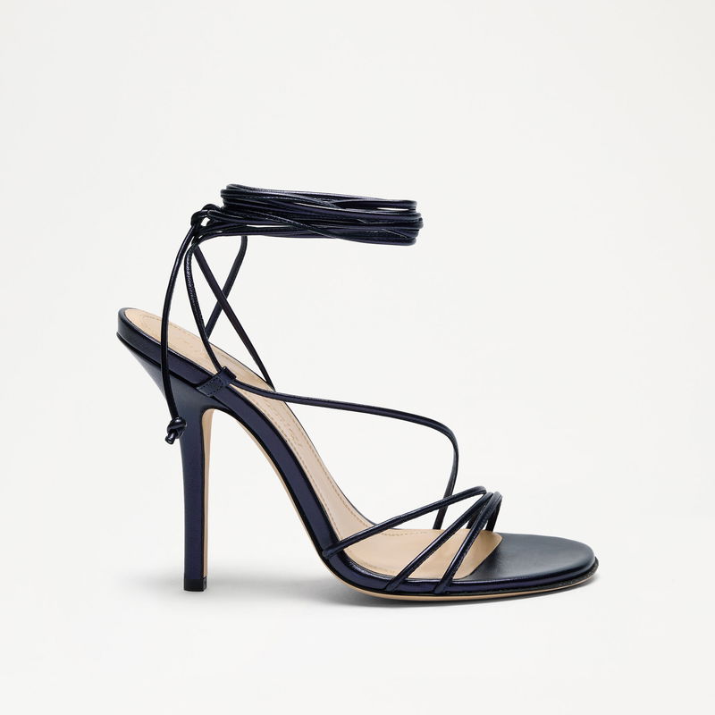Risley Strappy is all tension and allure. Slender straps frame the foot, while ankle ties wind with purpose, delicate, but impactful. Set on a soaring heel, the silhouette feels confident, intentional, and poised to make an entrance.