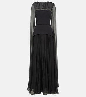 This piece is made from Safiyaa's signature heavy crêpe – a fabric that is favored for its graceful draping qualities. This maxi dress features a detachable belt at the waist and an embellished neckline.