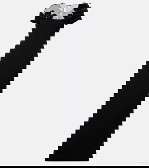 This piece is made from Safiyaa's signature heavy crêpe – a fabric that is favored for its graceful draping qualities. This bridal gown features a flattering, sheer neckline made from tulle with floral embroideries throughout.