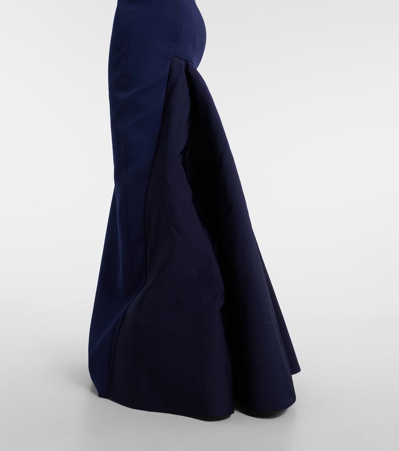 The Sloane gown features a timeless silhouette with striking adornments and flaring at the hem for high impact. This piece is made from Safiyaa's signature heavy crêpe – a fabric that is favored for its graceful draping qualities.