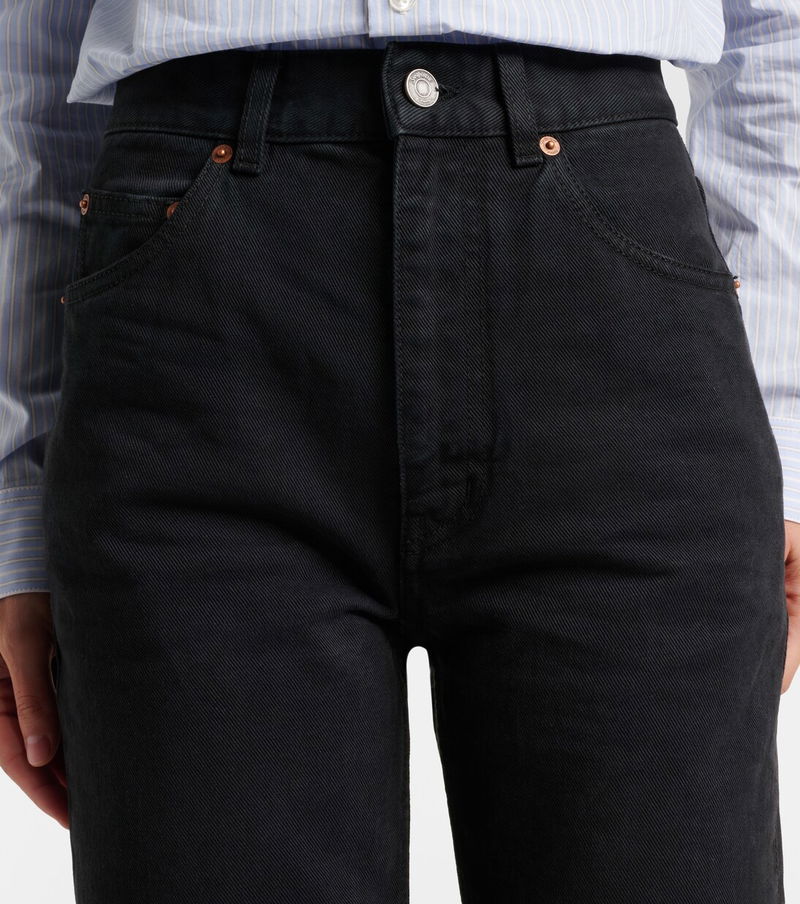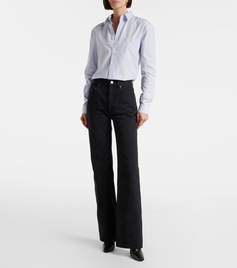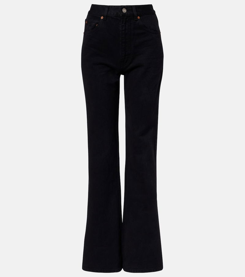 Since its conception in 1961, Saint Laurent has been coveted for its elegant Parisian aesthetic. The '70s jeans are cut to a bootcut silhouette with a high-rise waistline and a leather logo patch.