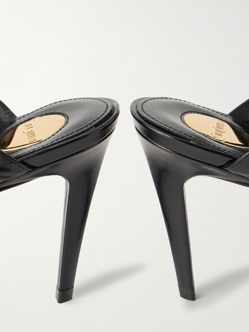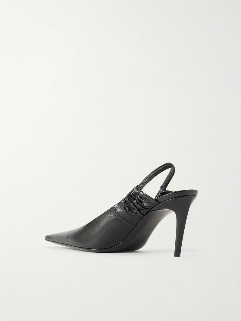 The elongated, squared-off toes on SAINT LAURENT's 'Anne Marie' pumps create the illusion of longer legs. Set on angled 75mm heels, they're made from black glossed-leather and have gathered slingback straps.