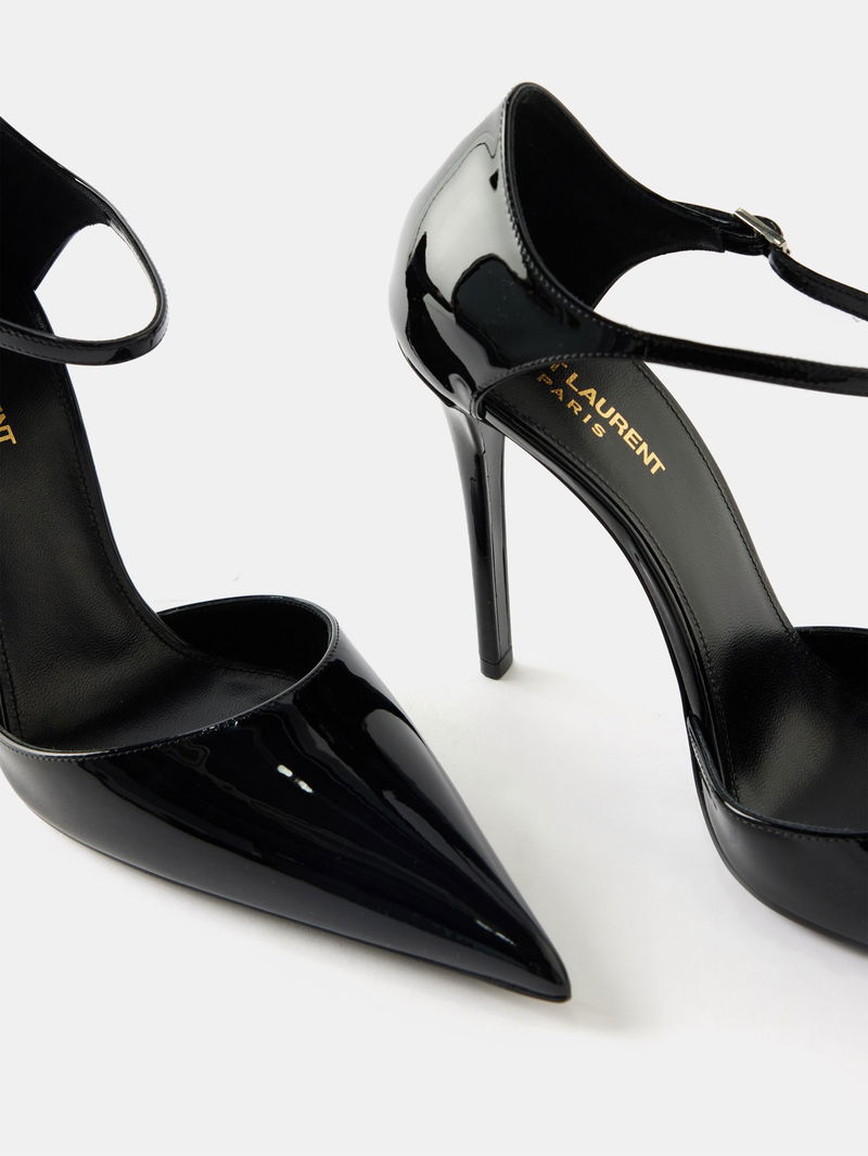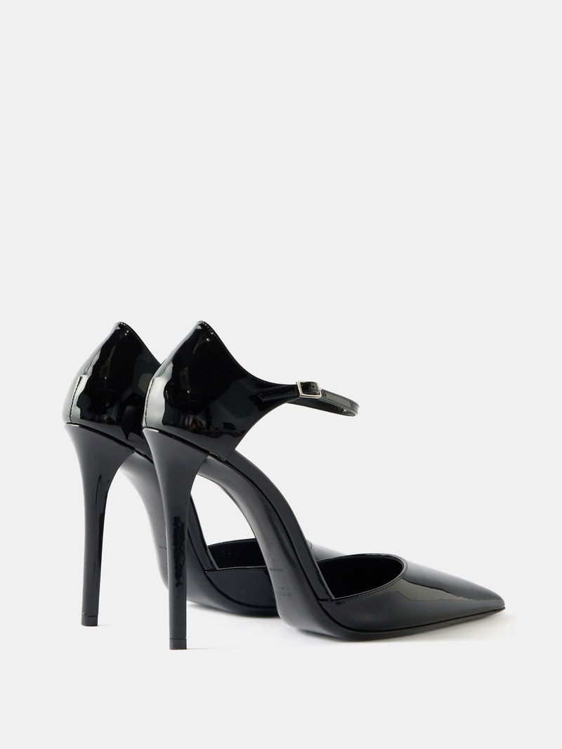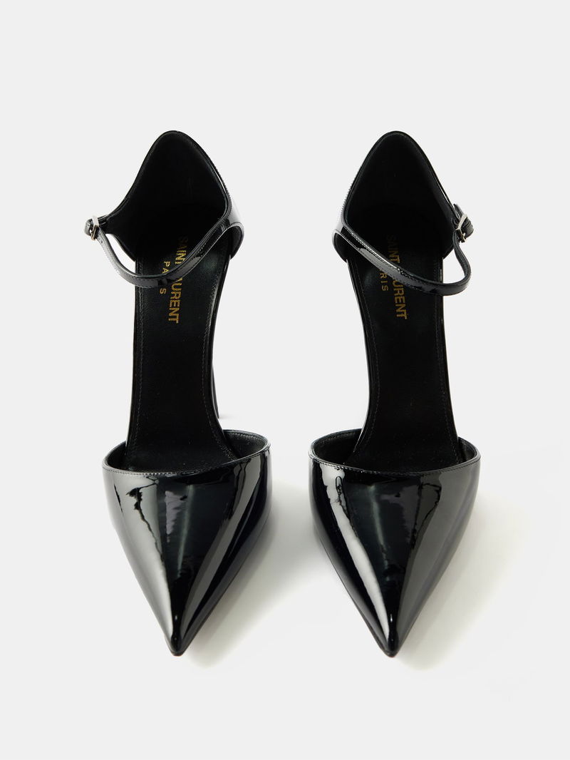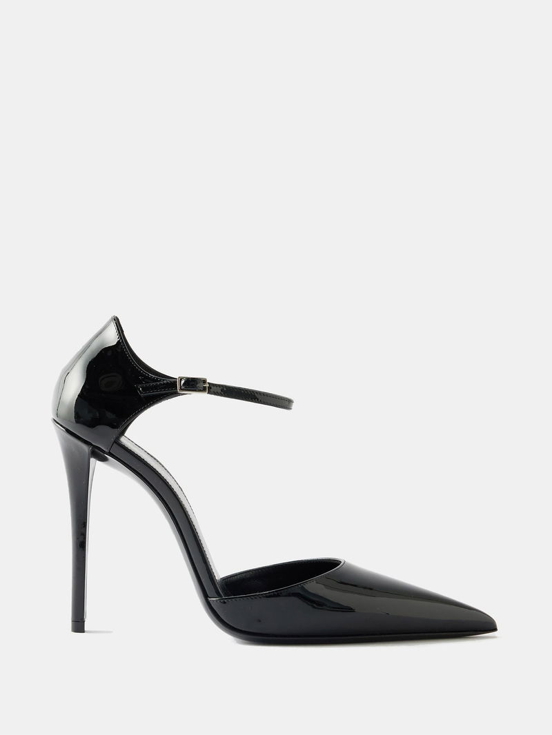 Defined by a sleek patent-leather upper, slim ankle straps and a sharp stiletto heel, Saint Laurent’s Avenue pumps capture the label’s refined aesthetic.