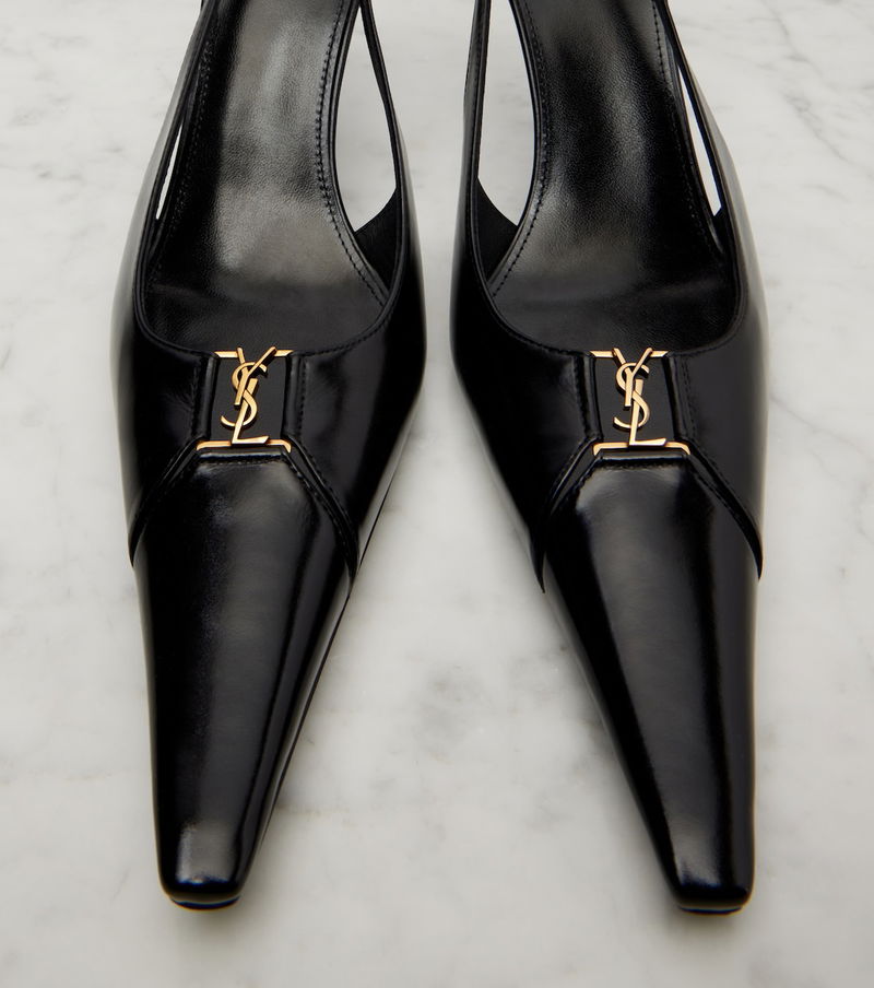Since its conception in 1961, Saint Laurent has been coveted for its elegant Parisian aesthetic. Set on 75mm heels, the Babylone Breteuil slingback pumps are Italian-made from leather with gold-toned signature monogram hardware.
