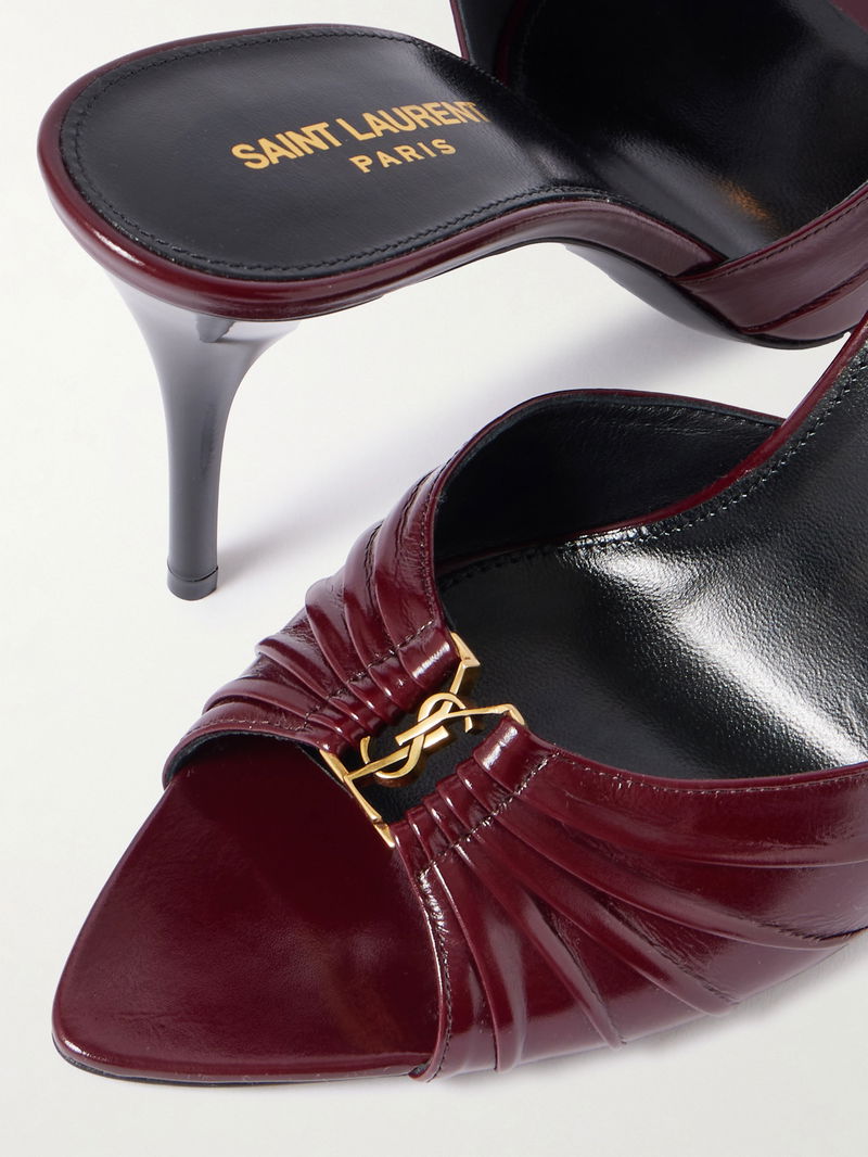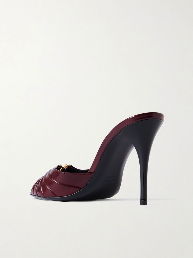 SAINT LAURENT's 'Babylone' mules are equal parts alluring and elegant. They're made from patent-leather that's gathered for a textural finish and rest on slender 90mm heels. Show yours off with mini and midi hemlines.