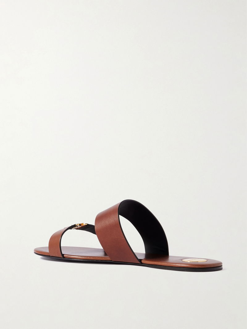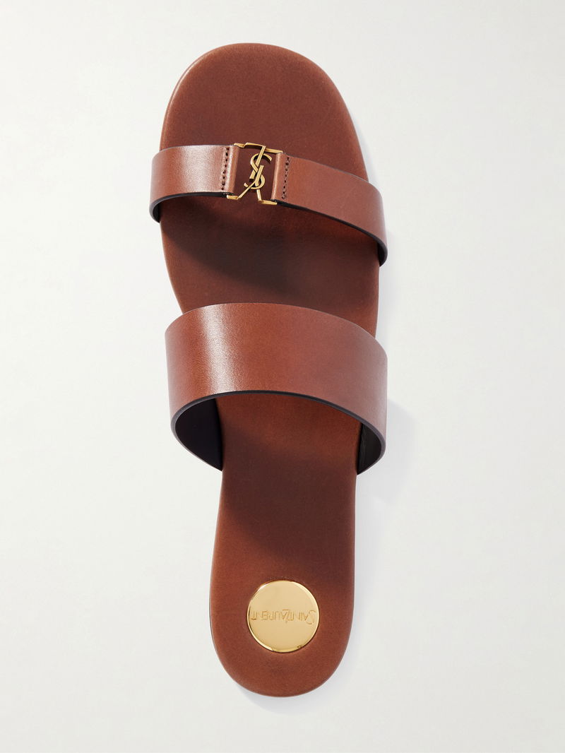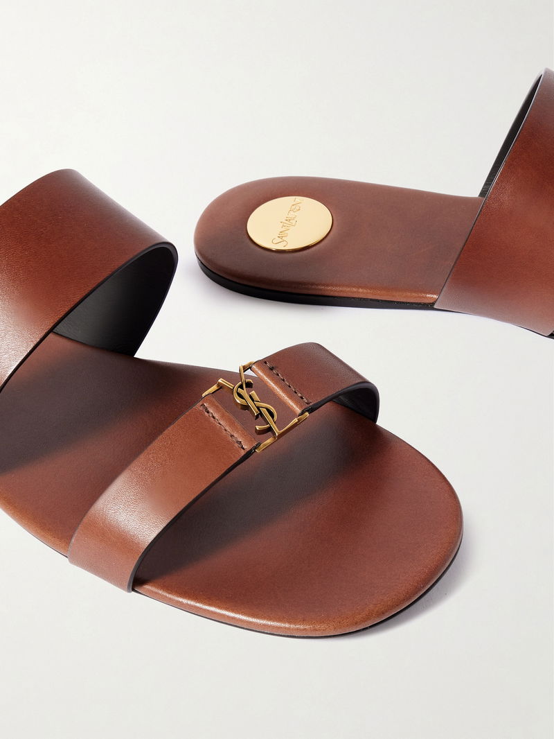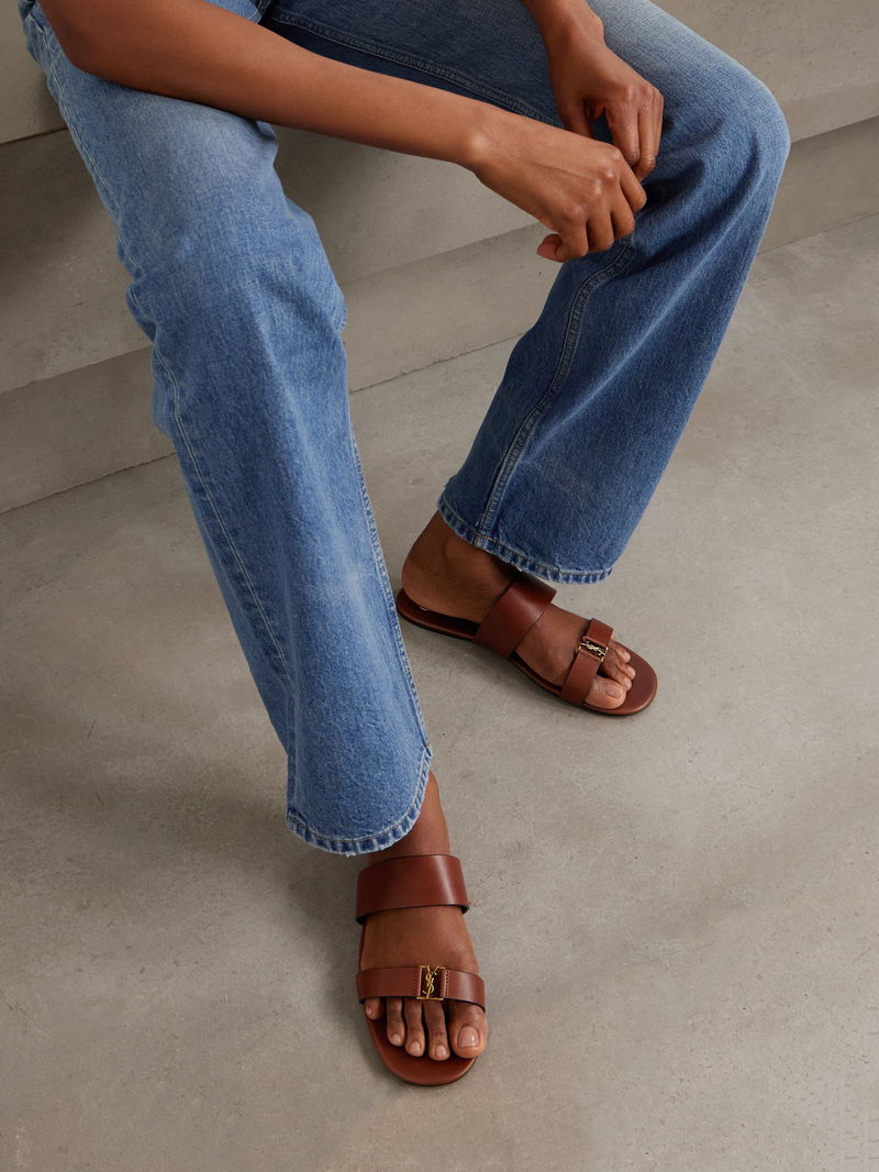 SAINT LAURENT's 'Babylone' slides are simple and streamlined, making them easy to style, and even easier to pack. They have leather uppers with logo embellishments on the strap.