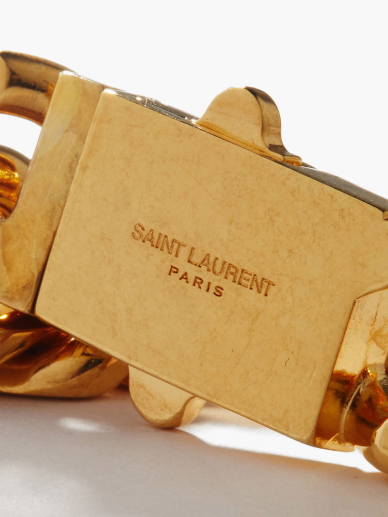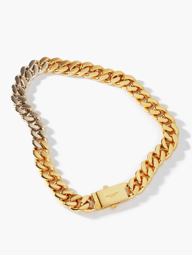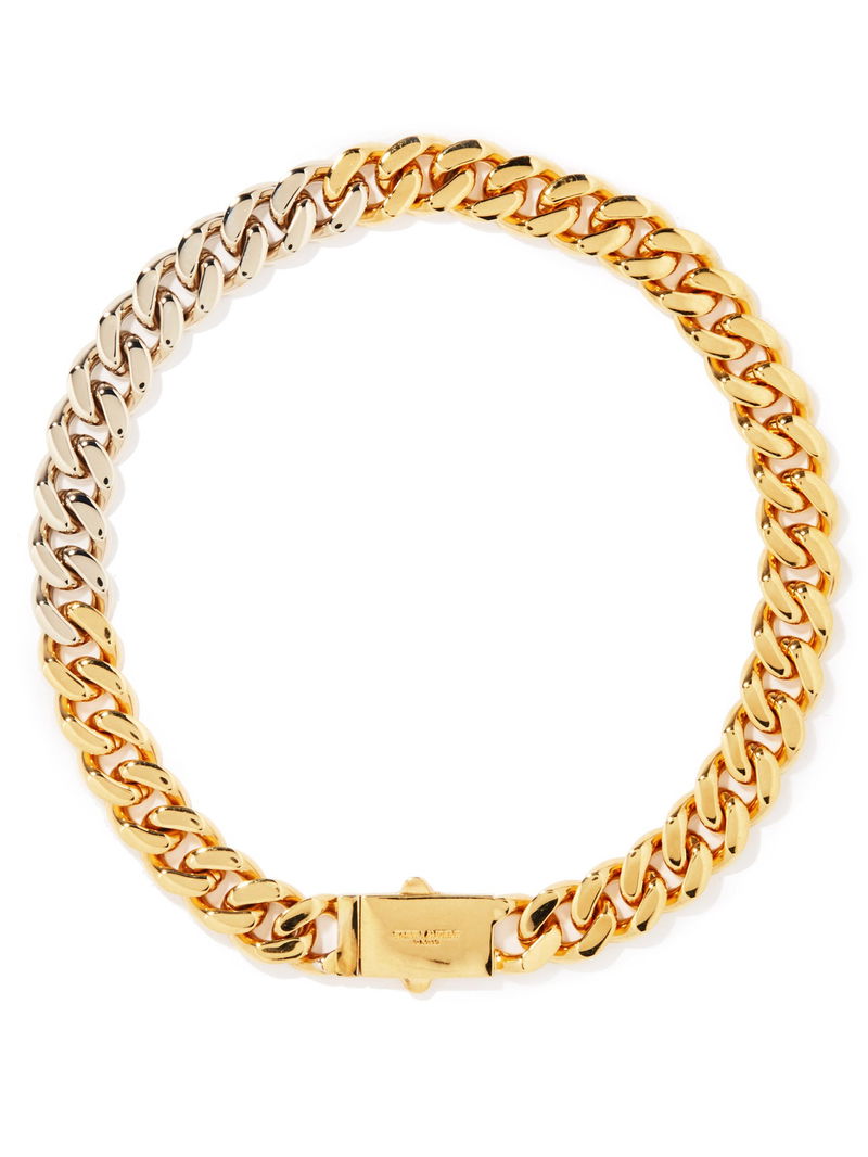 Saint Laurent brings modernity to the classic curb links of this gold-tone choker by rendering a portion of them with a lustrous silver finish. Italian crafted to a magnified profile from metal, it secures with a logo-engraved box clasp.