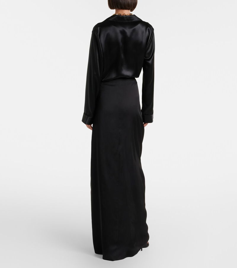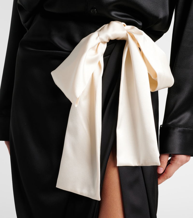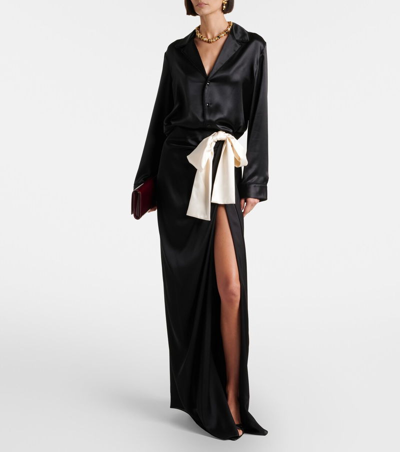 Since its conception in 1961, Saint Laurent has been coveted for its elegant Parisian aesthetic. Made from lustrous silk charmeuse, this maxi skirt boasts a deep front slit and a glamorous bow at the waist.