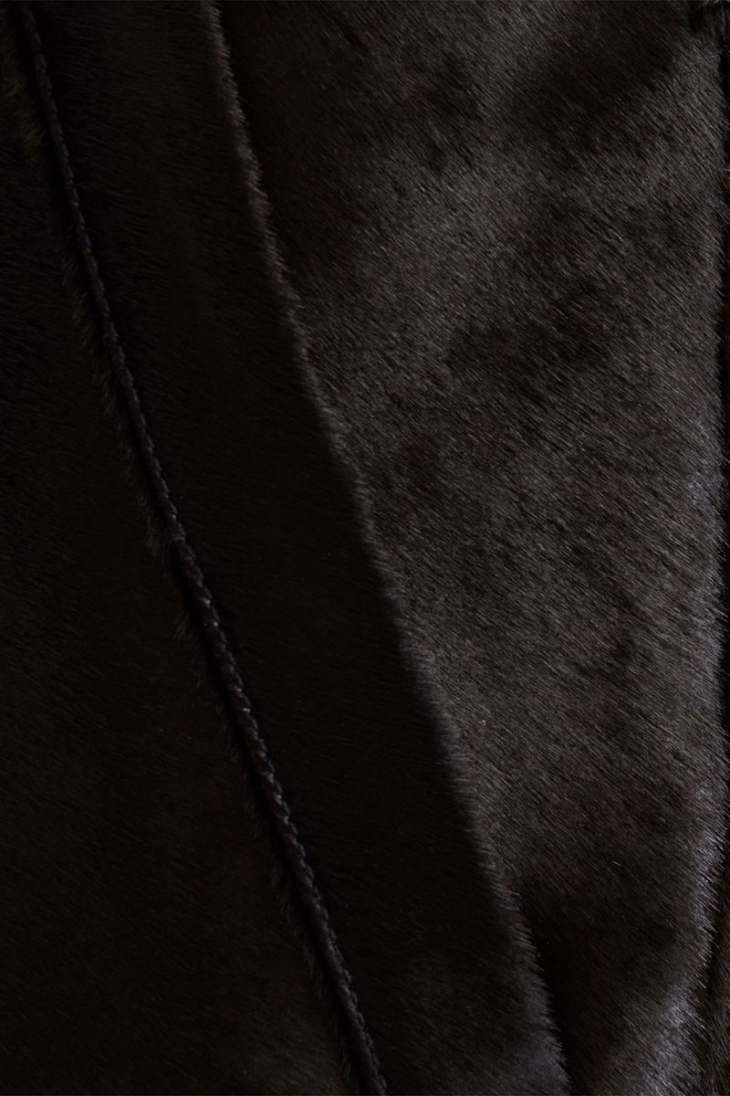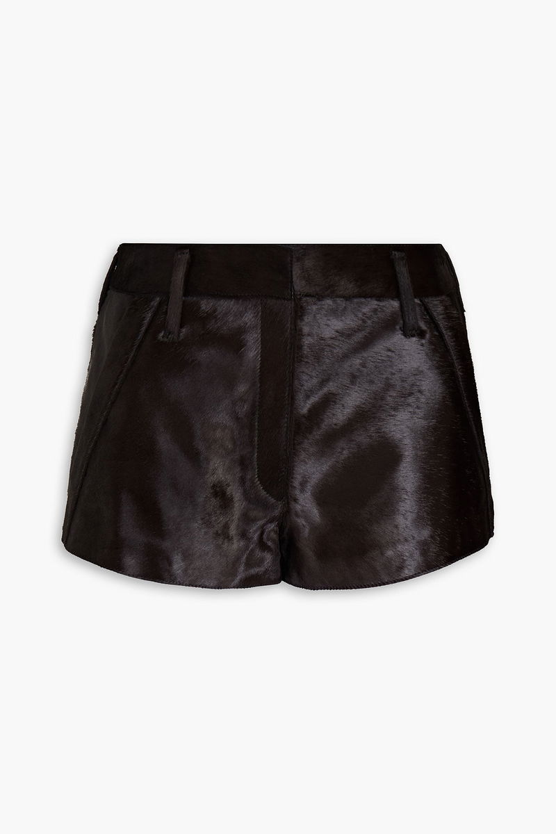 Shorts, Calf hair, Belt loops, High-rise cut, Two front slant pockets, Concealed hook, button and zip fastening at front, Firm, non-stretchy leather, Mid-weight fabric.