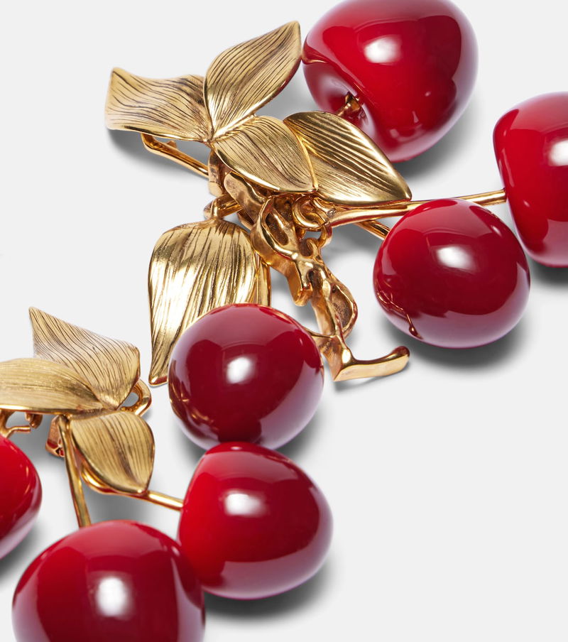 Since its conception in 1961, Saint Laurent has been coveted for its elegant Parisian aesthetic. These cherry earrings boast clip-on closures and sculptural, asymmetric silhouettes adorned with the house's signature Cassandre motif.