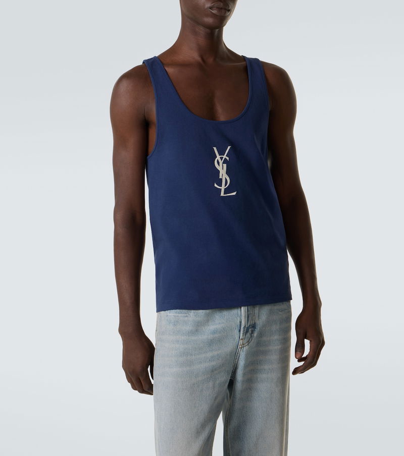 Made from breathable cotton, this tank top is embroidered with a Cassandre on the front. One of the most famous symbols in fashion, the YSL monogram consists of the intertwined initials of Saint Laurent's founder.