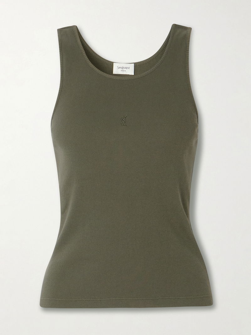 Cassandre Embroidered Ribbed Cotton-jersey Tank