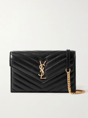 SAINT LAURENT's sleek 'Cassandre' wallet comes with a detachable chain strap, so it can be worn as a clutch depending on the occasion. It's crafted from durable textured-leather with a matelassé finish and topped with a 'YSL' logo plaque. The interior is fitted with six card slots, a bill sleeve and a zipped compartment that's perfect for storing your lipstick and keys.
