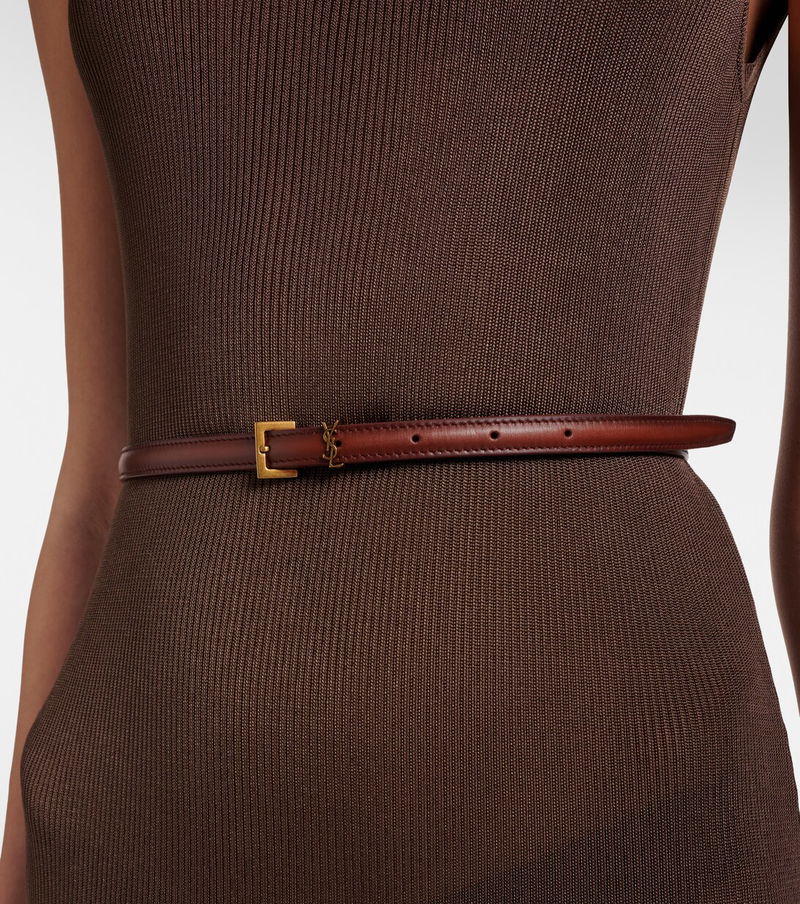 Saint Laurent's Cassandre belt will infuse your look with a high-fashion finish. The timeless design is crafted in Italy from brown leather and boasts gold-toned hardware, including an adjustable square buckle and the brand's unmistakable YSL signature loop.