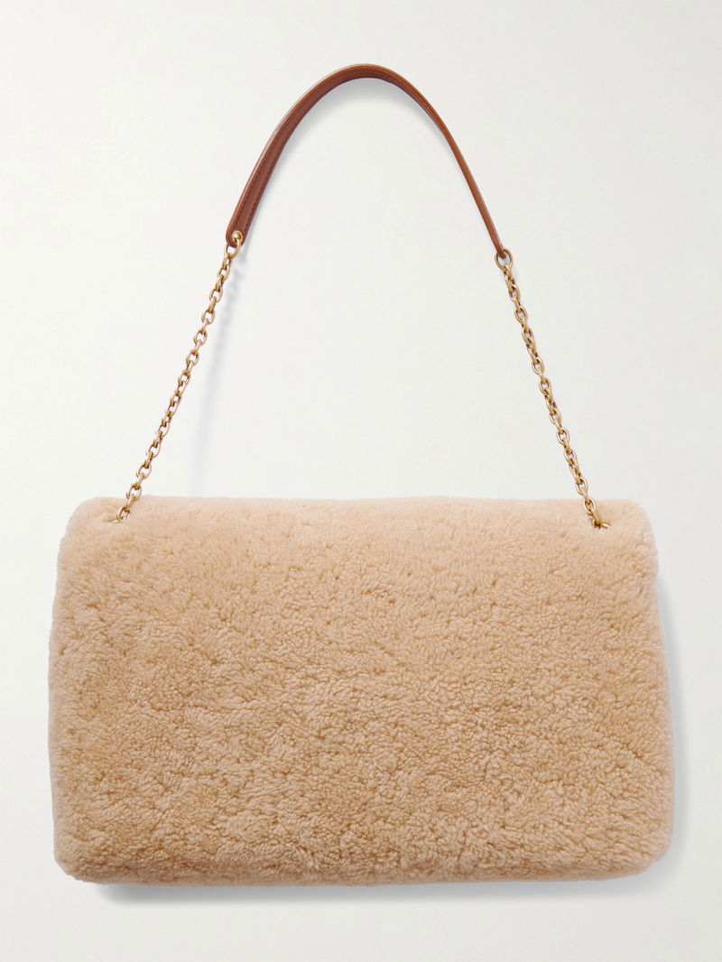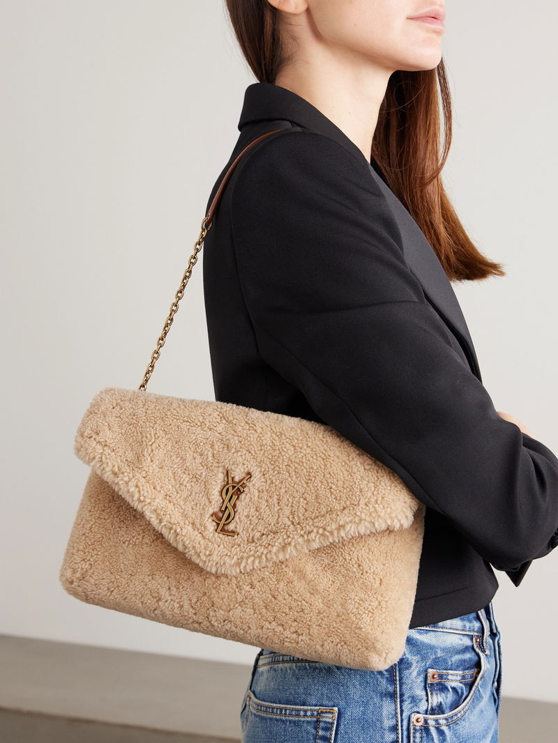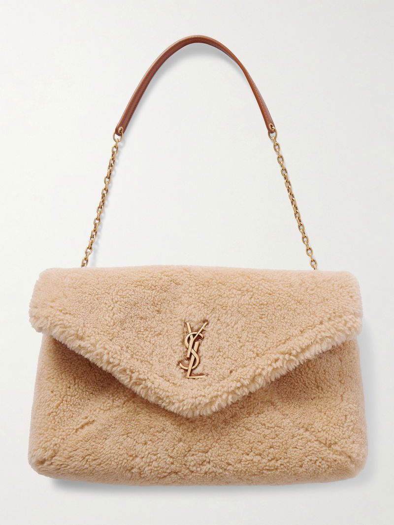 SAINT LAURENT's 'Cassandre' line is named after the graphic designer behind the famous 'YSL' plaque. Crafted in Italy from shearling, this shoulder bag has a timeless envelope shape and leather-trimmed gold-tone chain strap that can be completely removed. The compact interior has enough space for the essentials, like your cardholder, lipstick and phone.