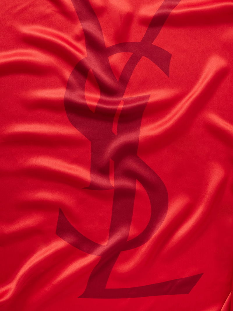 Cut from fluid silk-satin, this design is printed with the iconic 'YSL' logo in a tonal hue.