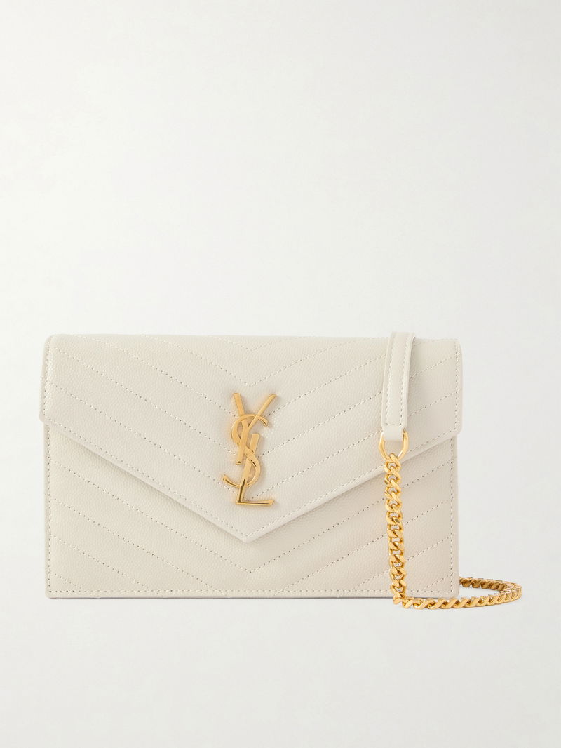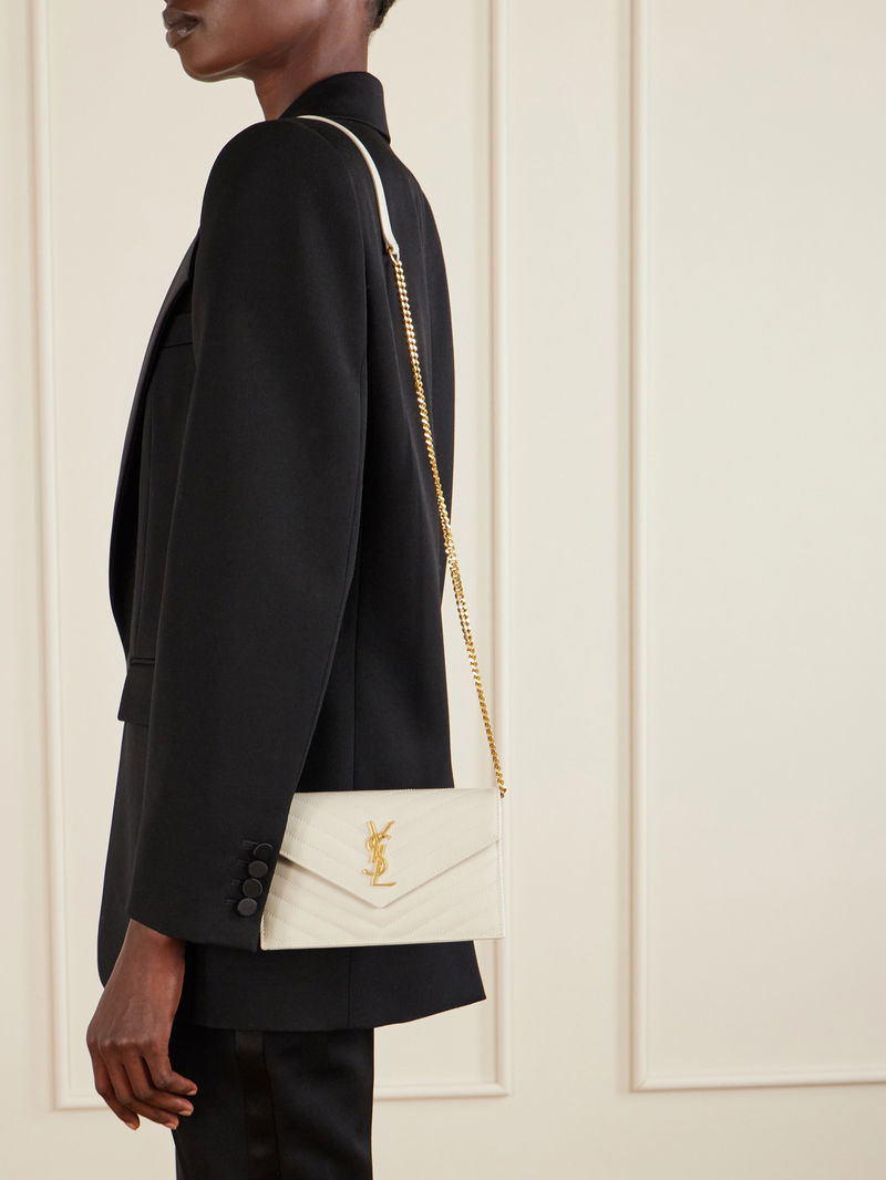 SAINT LAURENT's shoulder bag is an utterly timeless choice. It's been crafted in Italy from pebble-grain leather in the signature quilted style and topped with the iconic 'Cassandre' hardware. We love the chain-trimmed strap and compact shape, which will fit a phone, lip color, keys, plus a few small items in the zipped pocket.
