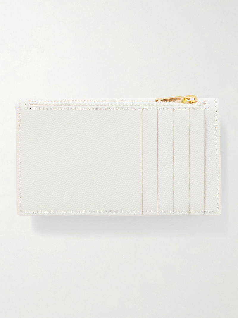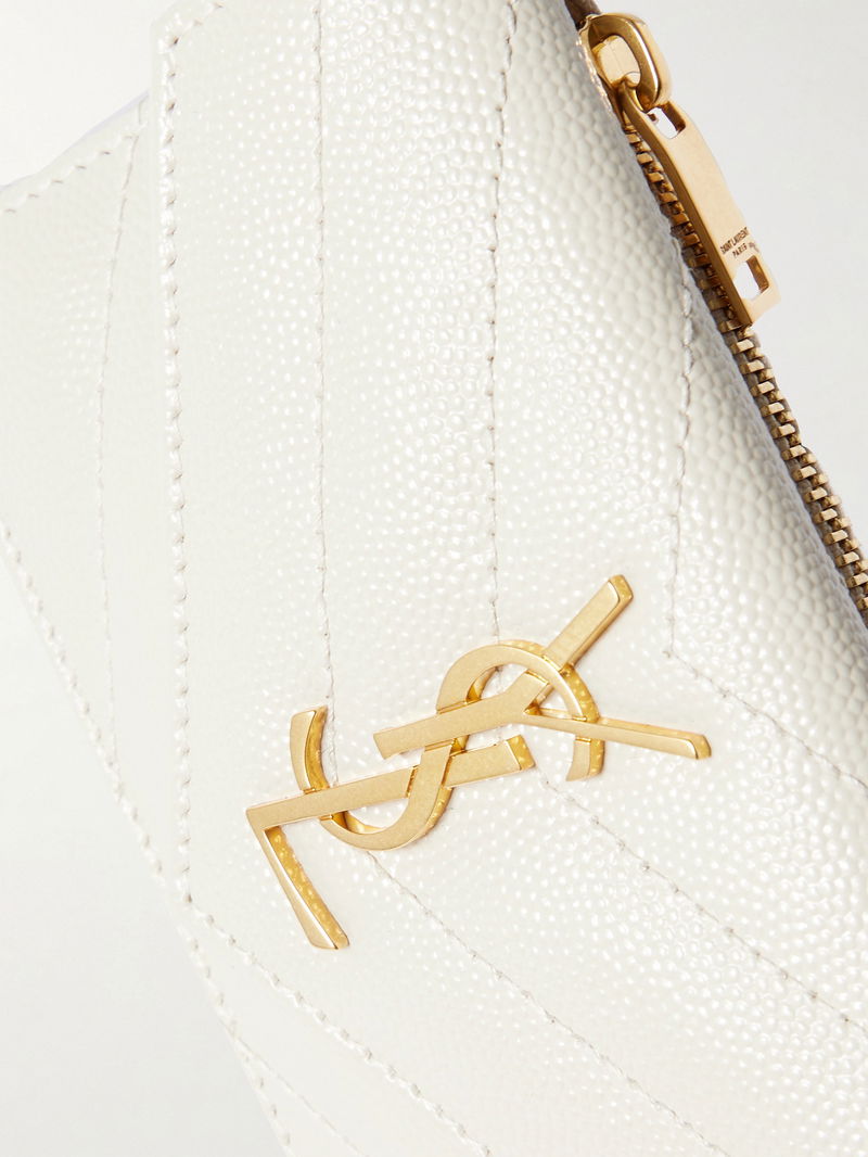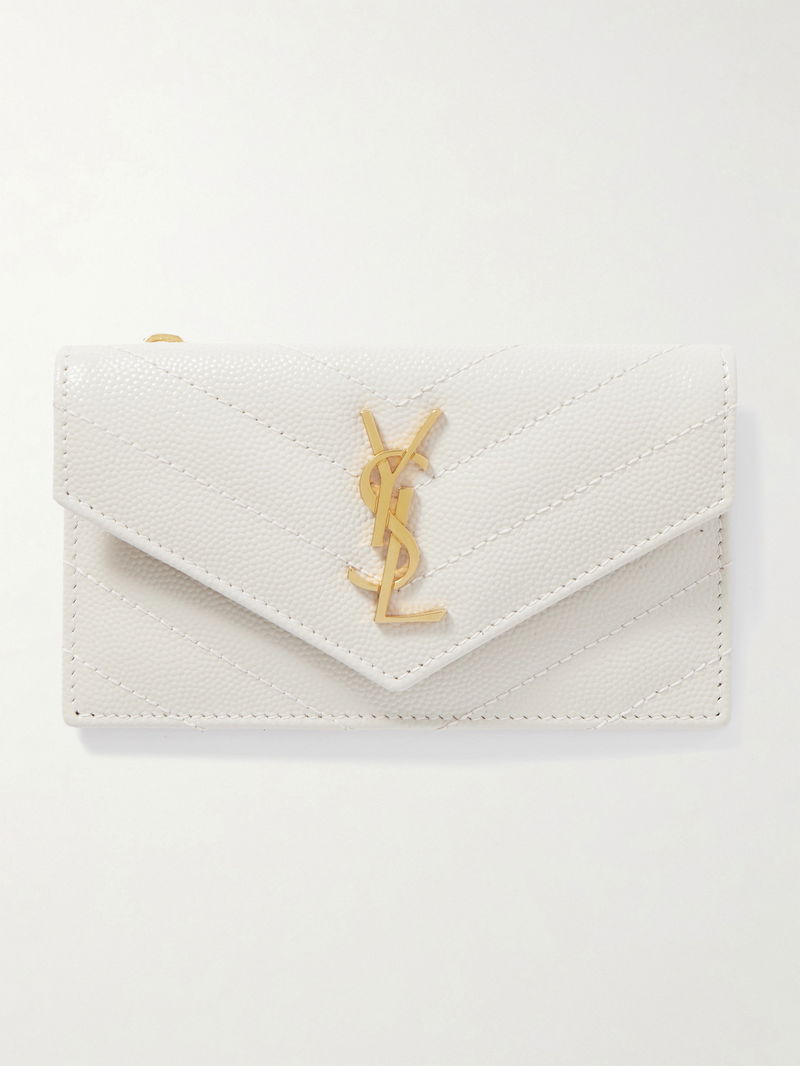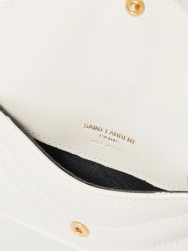 SAINT LAURENT's 'Cassandre' wallet has been made in Italy from quilted textured-leather and topped with the label's iconic 'YSL' plaque in gold. It's fitted with plenty of cardholder slots and has space for cash or receipts.