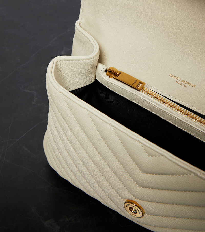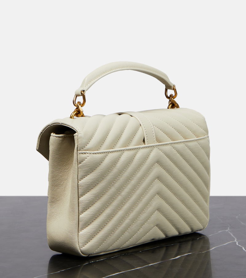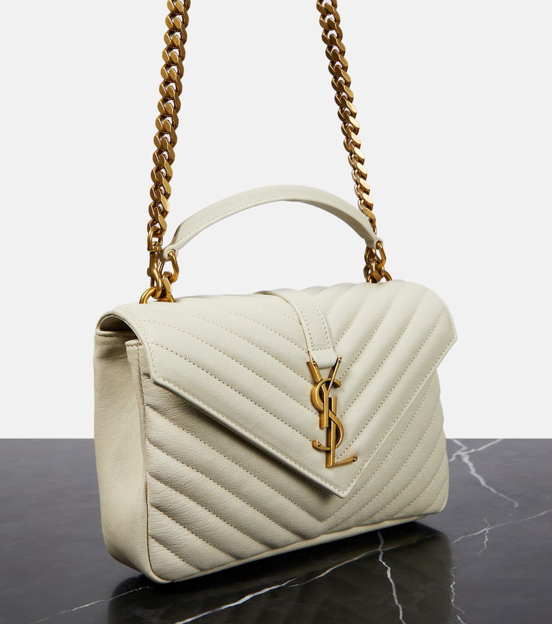 One of the most famous symbols in fashion, the YSL monogram consists of the intertwined initials of Saint Laurent's founder. Made with a quilted chevron construction, the lambskin College Medium shoulder bag has gold-tone hardware.