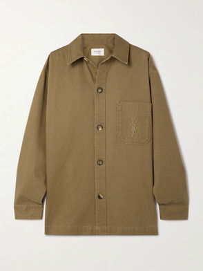 Saint Laurent adds its own spin to the classic tailored shirt with this piece. Rendered from a cotton-blend composition, it nods to traditional codes via its spread collar and long sleeves, while bringing a modern touch through a concealed half-placket and ample gathering by the shoulders.