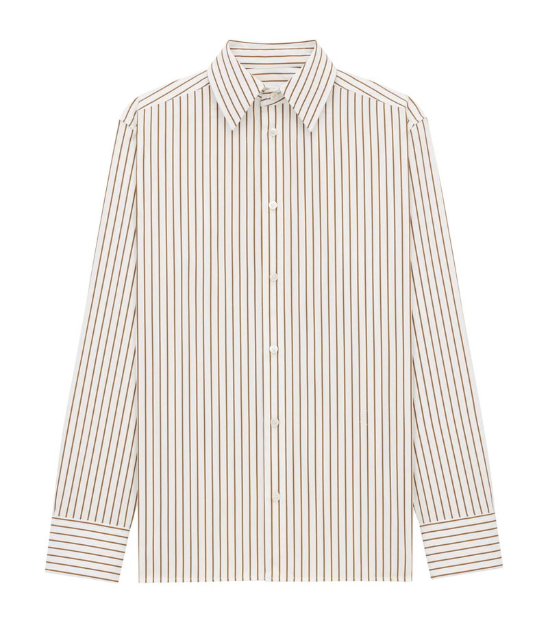 Musing on the appeal of menswear staples adapted for the female form, the Maison gives this classic sharp-collared shirt relaxed proportions through the dropped shoulders, making it impactful whether it's layered or styled on its own.