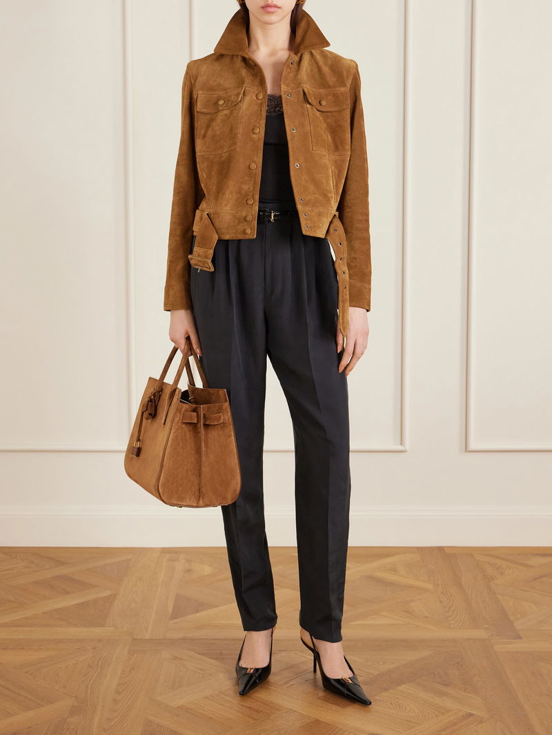 Cropped Belted Suede Jacket