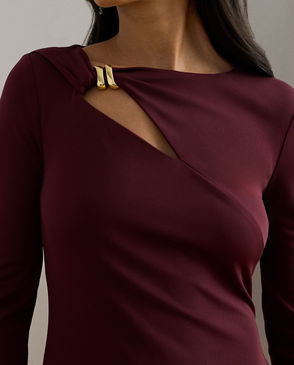 Dress, Cotton-twill, Cutout, Detachable leather belt, Belt loops, Breast pockets, Side slit pockets, Front slit, Button fastenings along back, Concealed hook and zip fastening at back, Mid-weight, non-stretchy fabric.