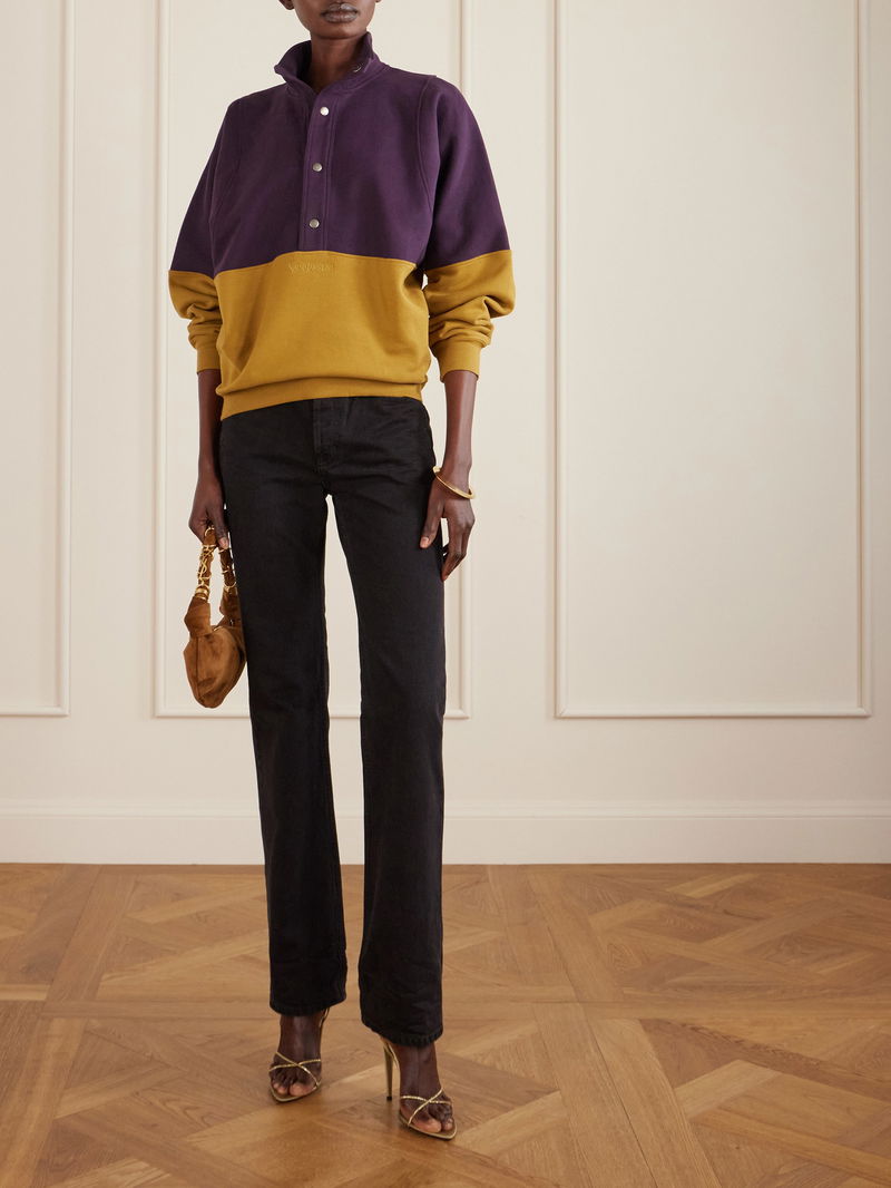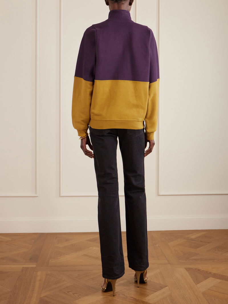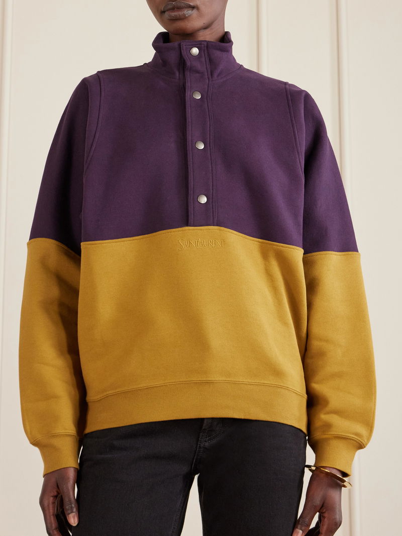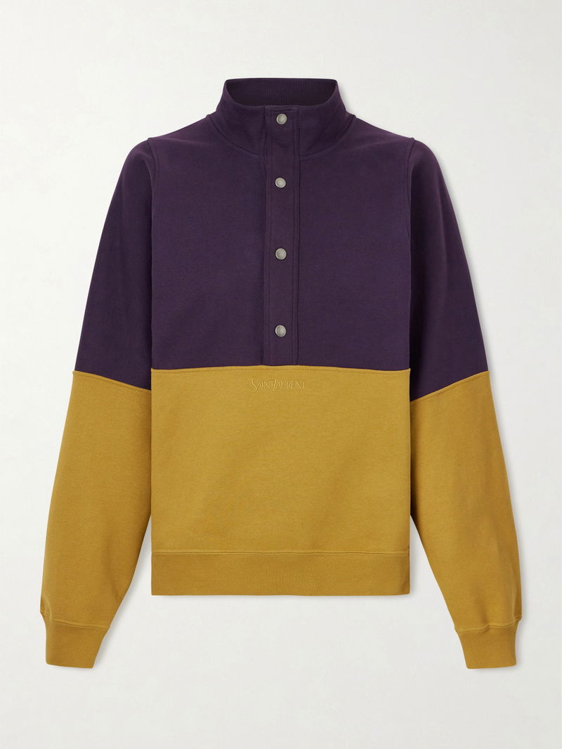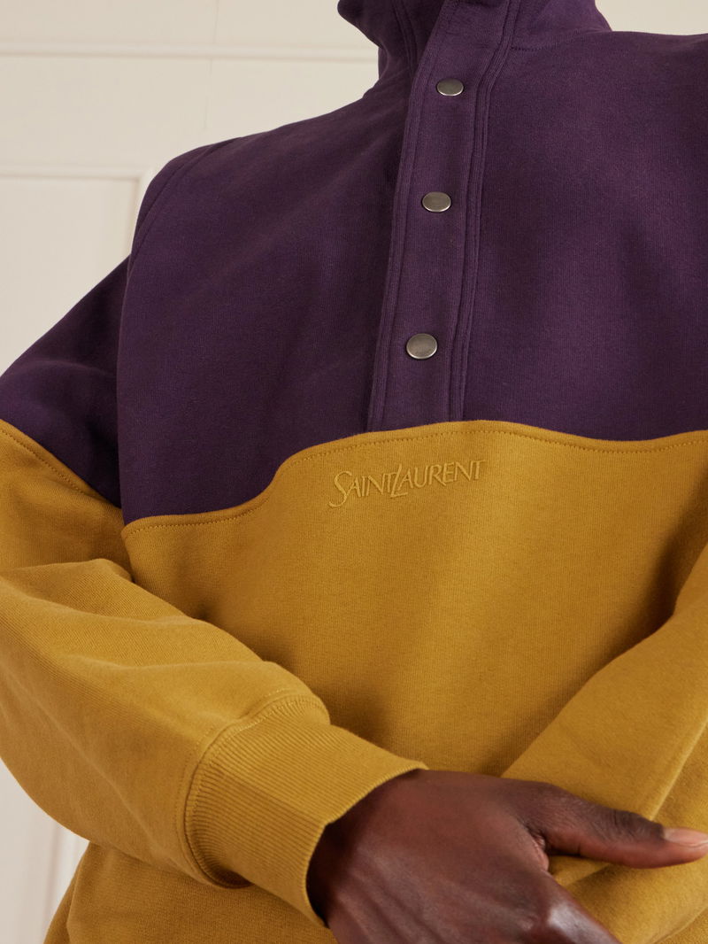 SAINT LAURENT's sweatshirt has been made in France from contrasting shades of cotton-jersey – it looks like a vintage find from the '90s. It has an elongated placket and is embroidered with the iconic 'Cassandre' moniker.