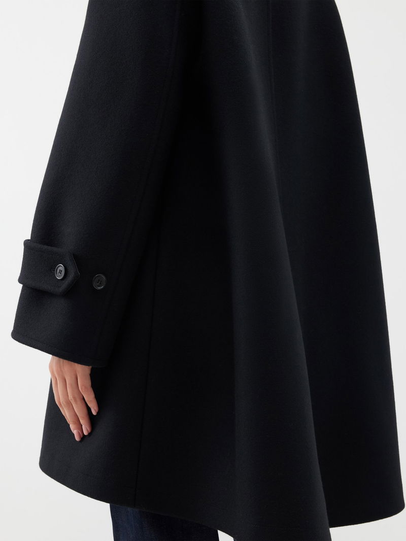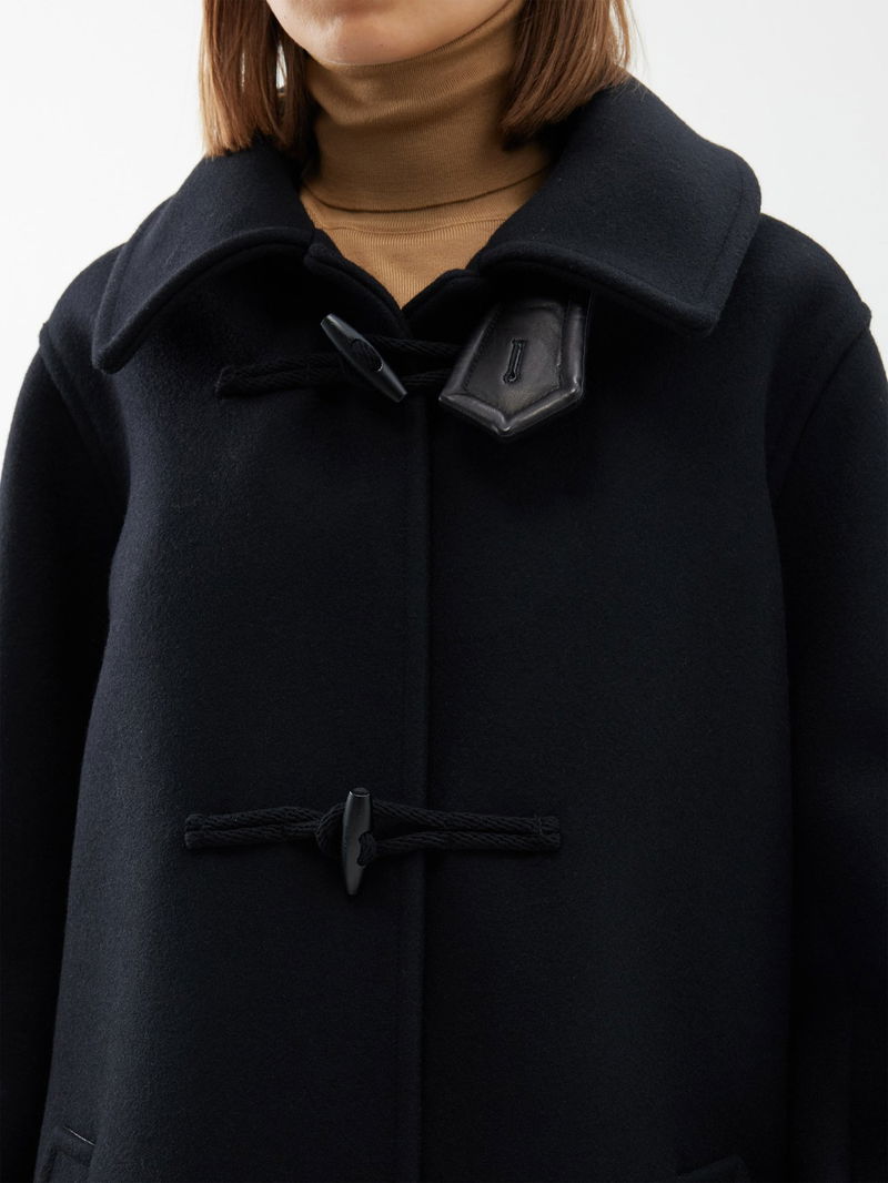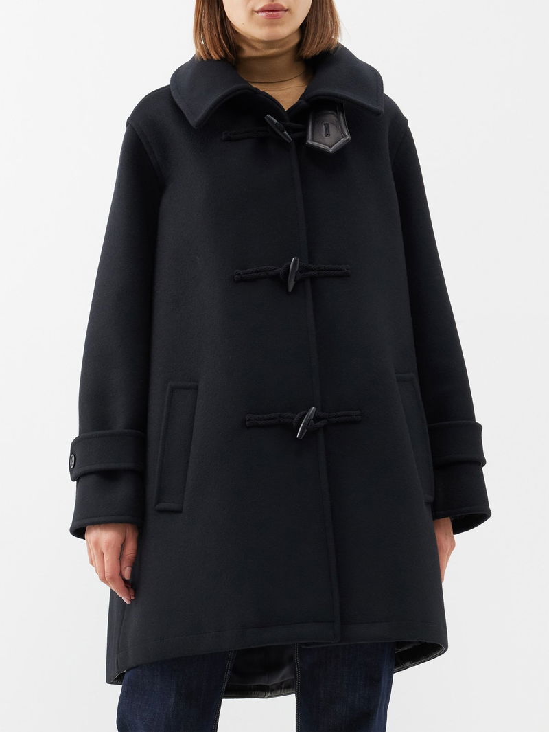 Saint Laurent's black duffle coat is crafted from a durable wool and reworks the silhouette with a contemporary exaggerated collar and large toggles.
