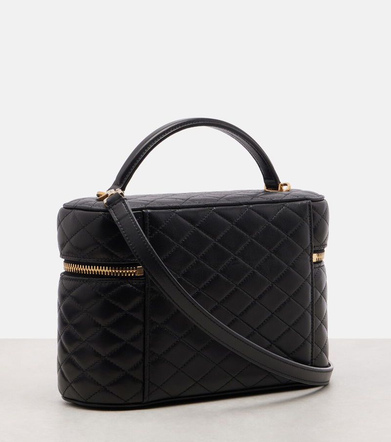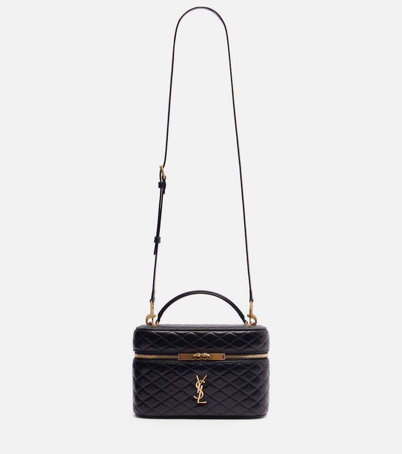 Since its conception in 1961, Saint Laurent has been coveted for its elegant Parisian aesthetic. Adorned with the iconic Cassandre logo, the Gaby Large vanity bag is made from quilted leather and features a top handle and a detachable adjustable strap.