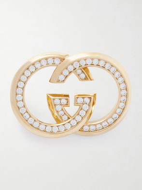 Designed by graphic artist Cassandre, also known as Adolphe Jean Marie Mouron, SAINT LAURENT's interlocking logo has been synonymous with the house since its debut in 1961. This gold-tone brooch is cast in the shape of the iconic monogram and engraved with twisted stripes. Fasten yours on the lapel of a blazer.