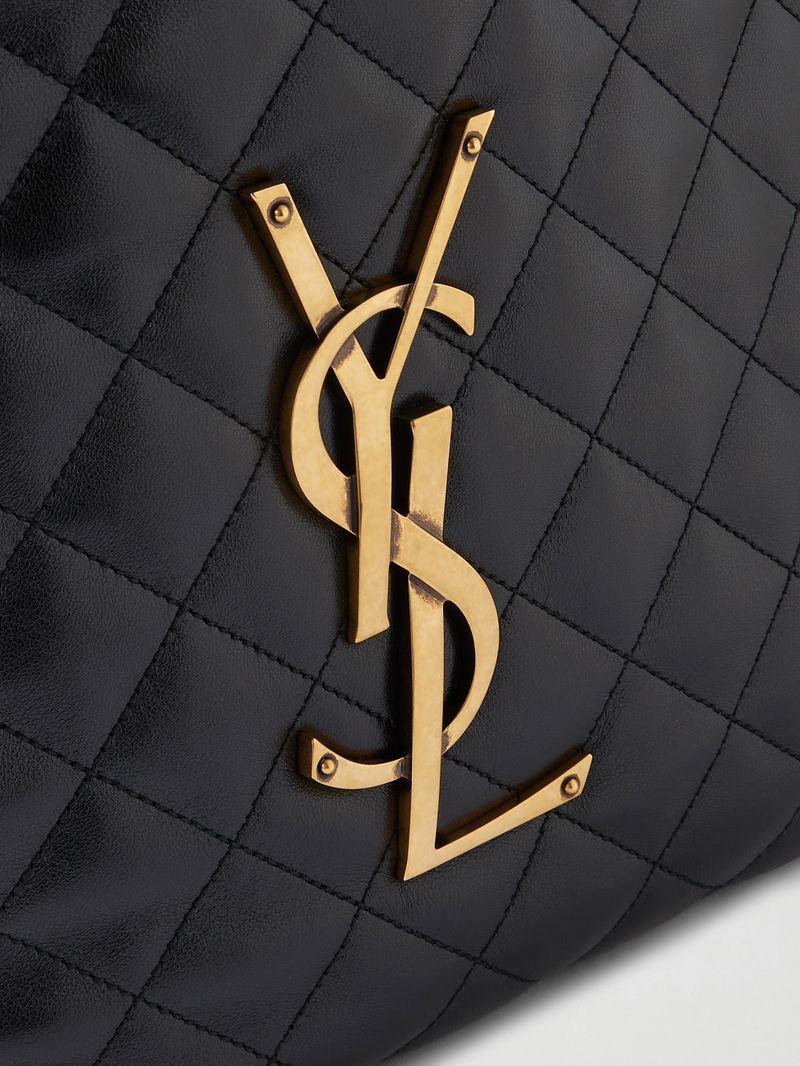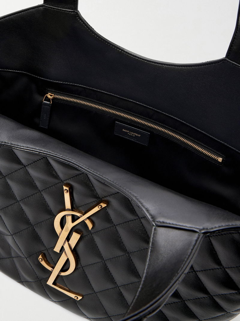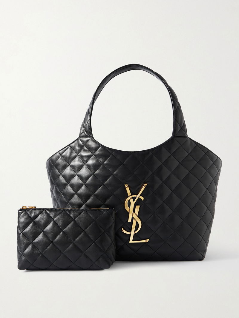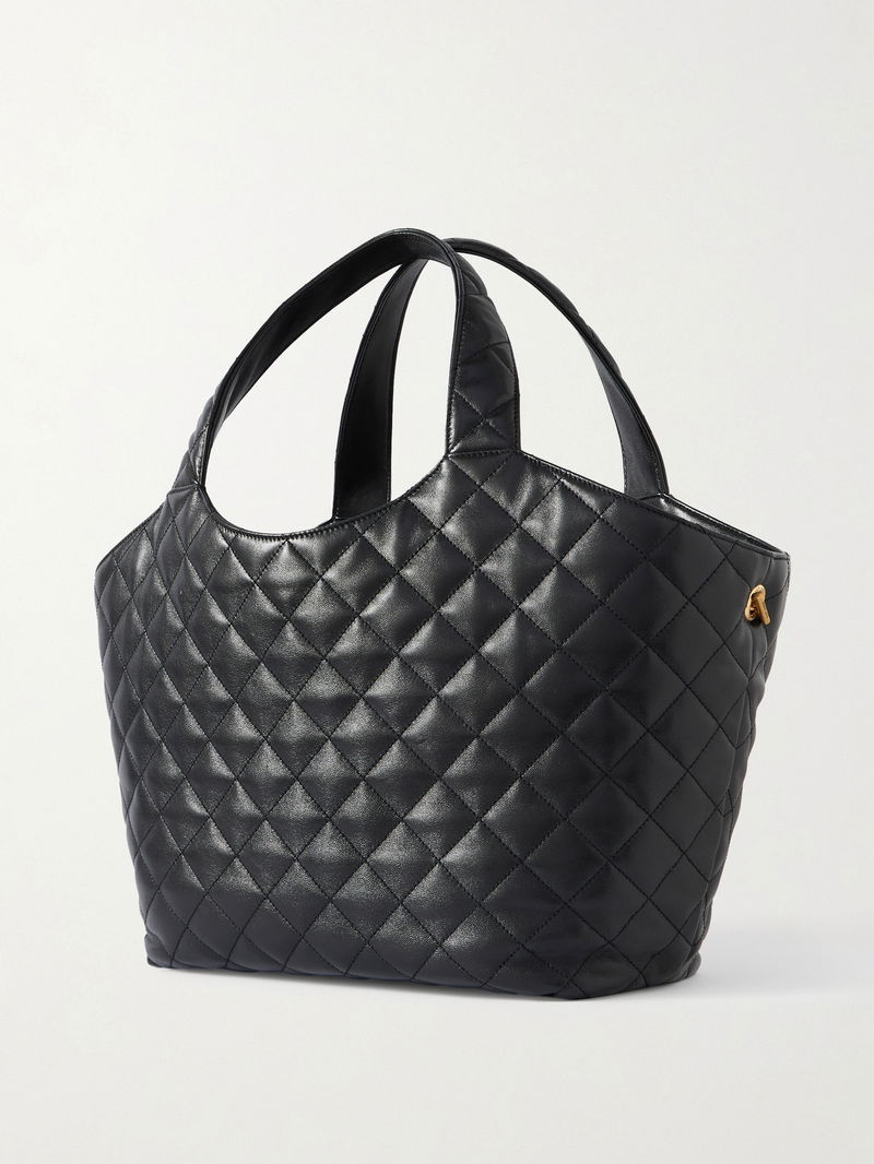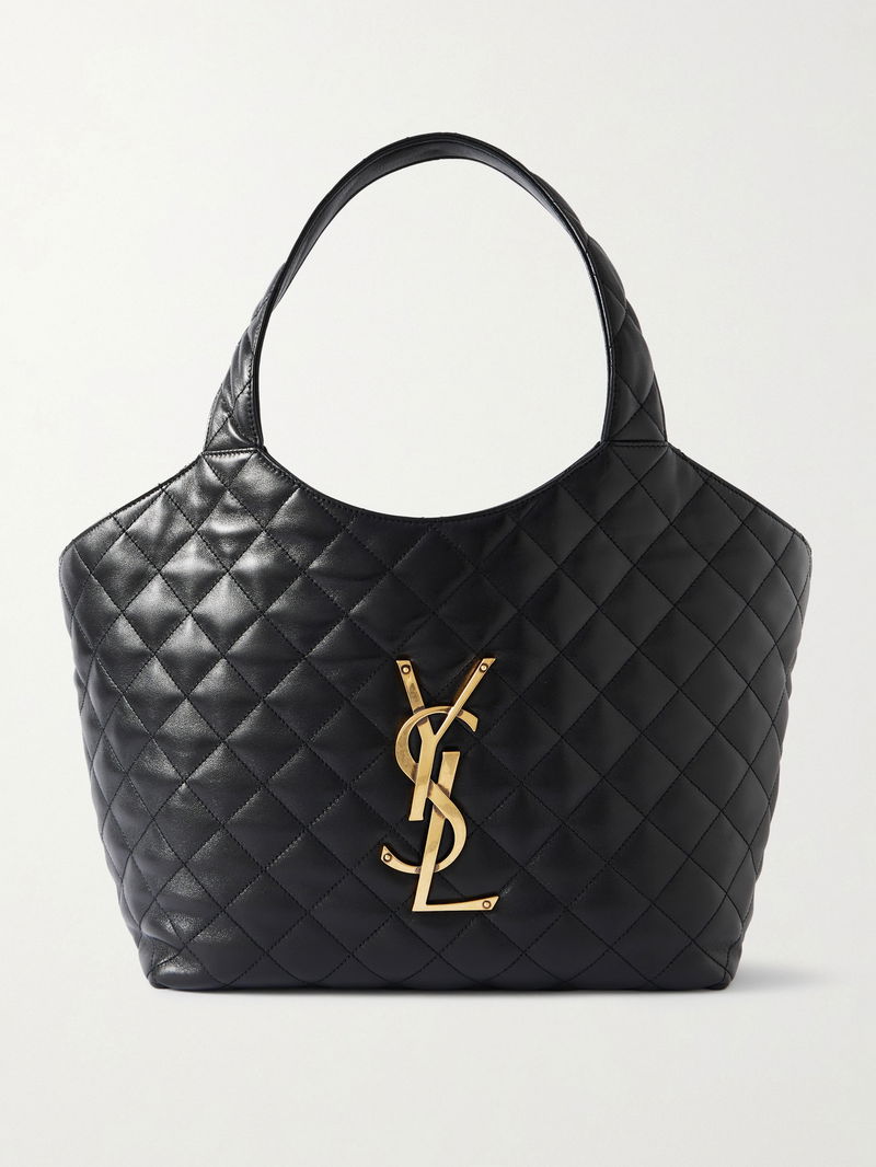 SAINT LAURENT's 'Icare' tote is crafted from black leather using the house's signature quilting technique and features the burnished gold-tone 'YSL' logo. Capacious enough to carry everything from your tablet to cosmetics bag, this medium iteration is perfect for travelling.