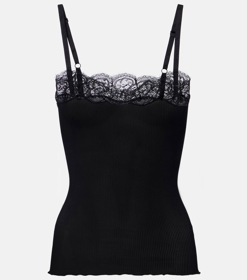 Since its conception in 1961, Saint Laurent has been coveted for its elegant Parisian aesthetic. This slim-fit top is ribbed-knit from pure silk jersey with delicate, scalloped lace trims.